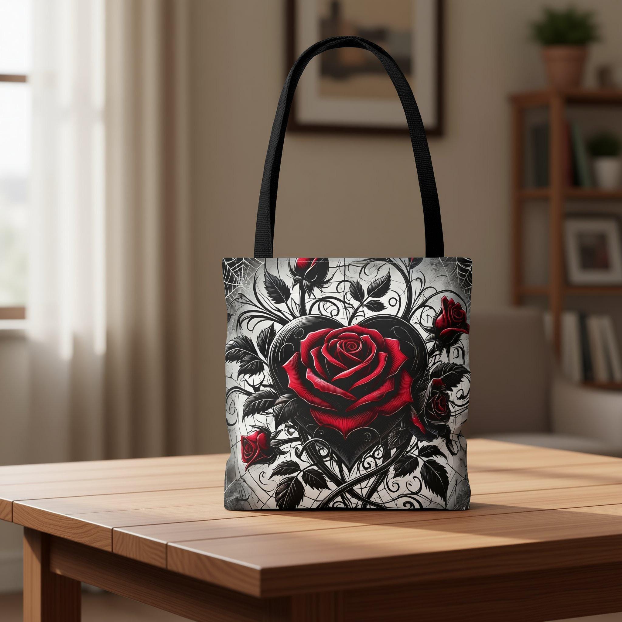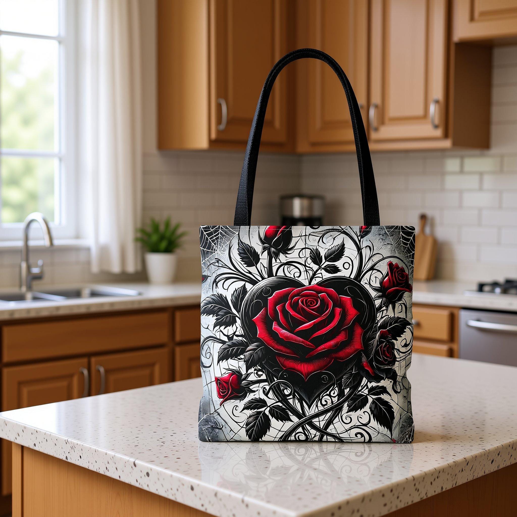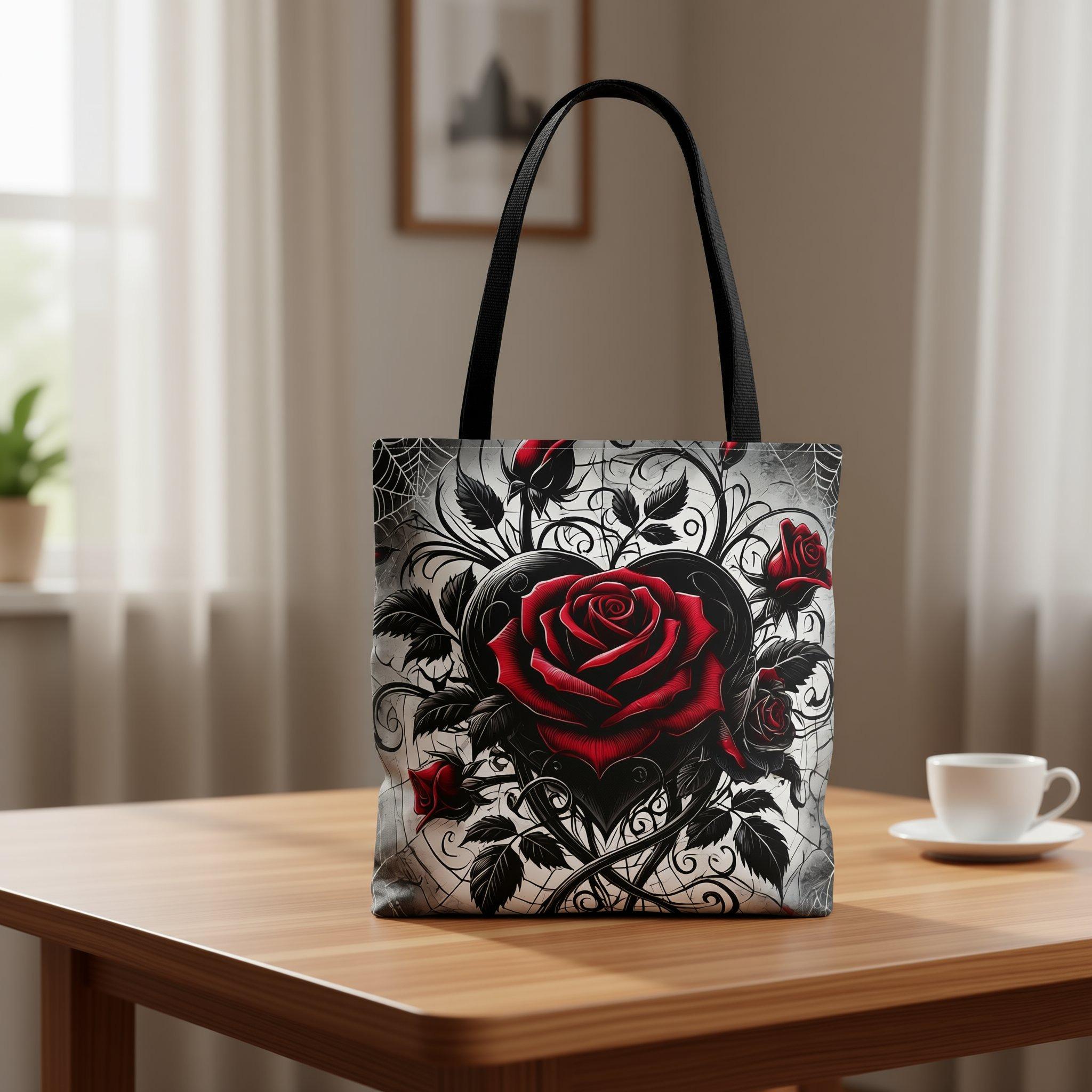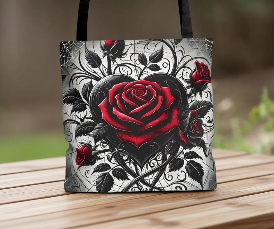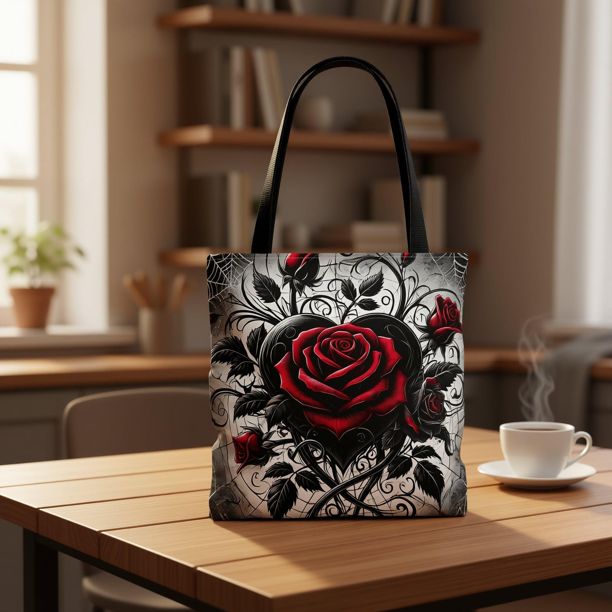 Discover the perfect blend of elegance and edge with our Gothic floral tote, designed to captivate lovers of unique rose patterns and gothic heart design. This spacious large tote offers both style and practicality, making it an ideal companion for everyday carry. Crafted with care, its cotton handles ensure comfort whether you’re carrying books, groceries, or daily essentials.