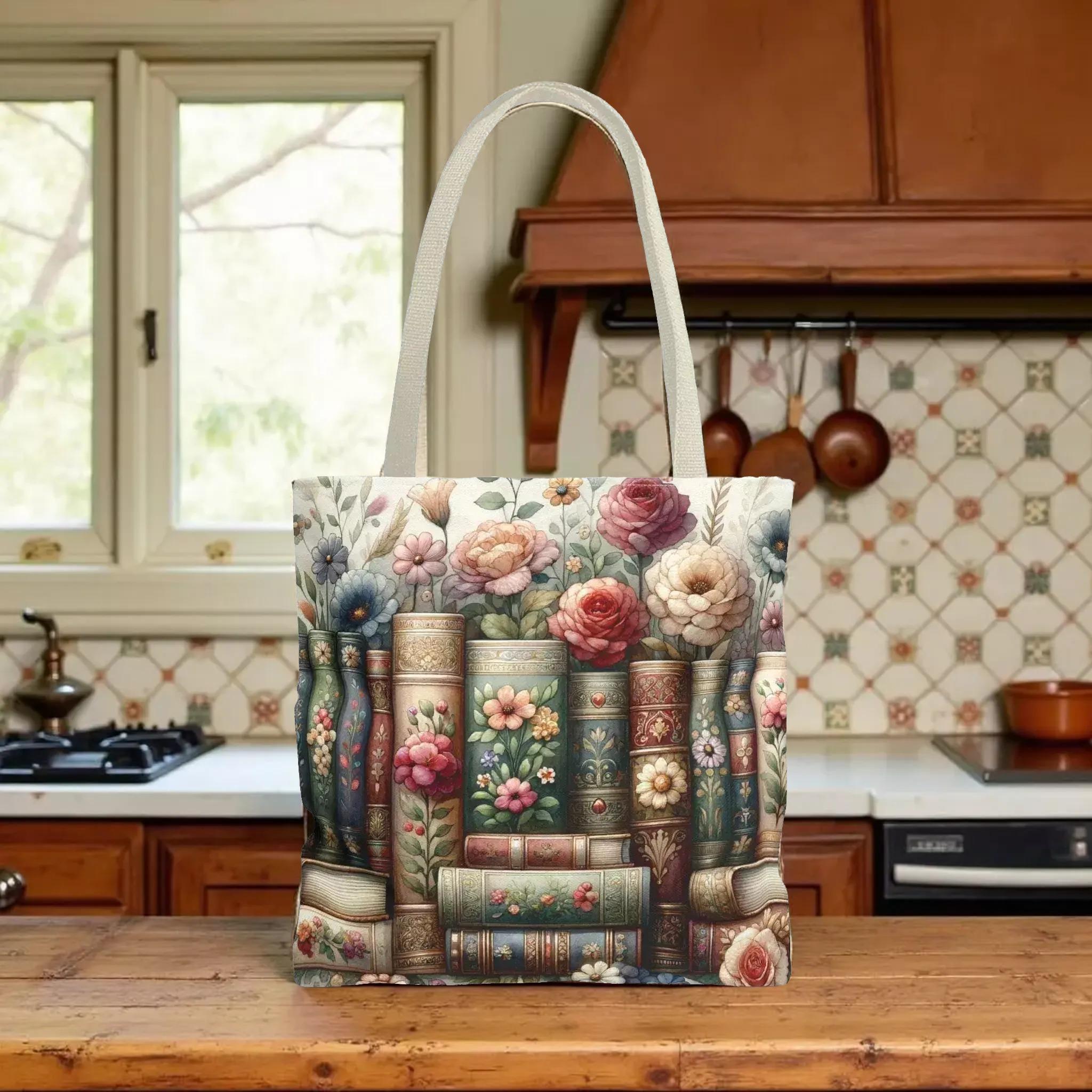Books & Flowers Carryall Tote Bag is a stylish and durable tote bag perfect for carrying books, groceries, or any essentials. The design features books and flowers, creating a cozy and literary vibe. This tote bag is ideal for book lovers, students, teachers, and anyone who appreciates a touch of nature in their daily life. Perfect for gifting on birthdays, Valentine's Day, Mother's Day, or as a teacher appreciation gift.