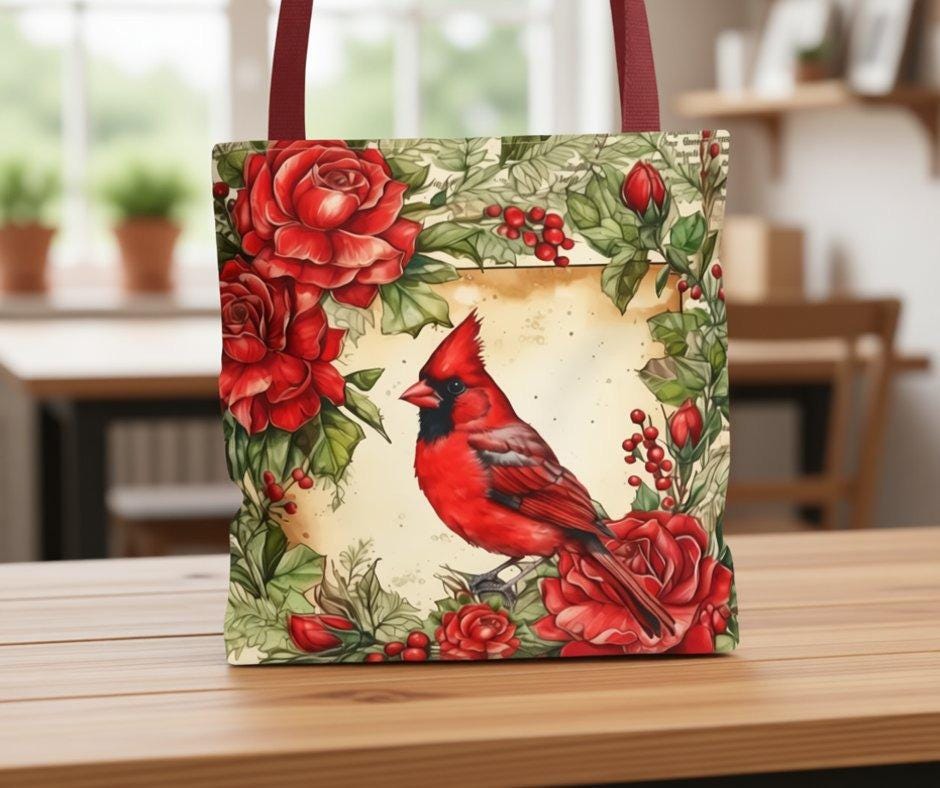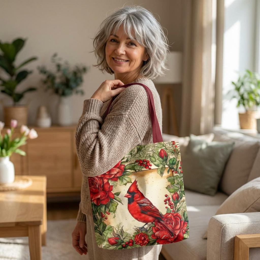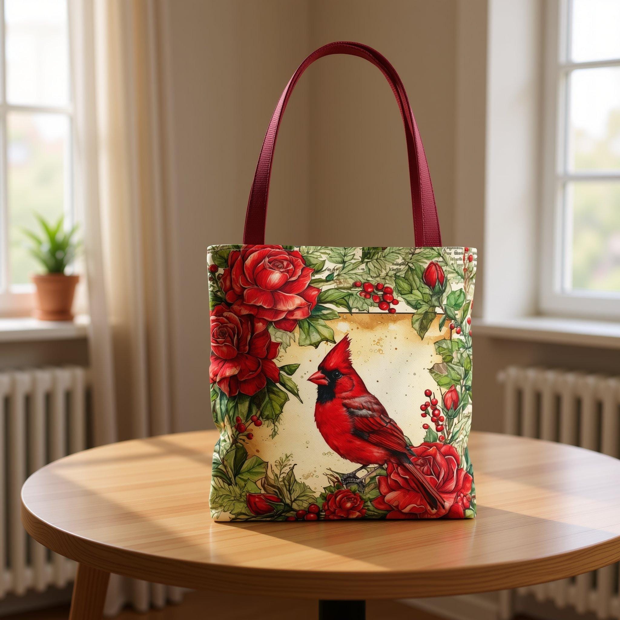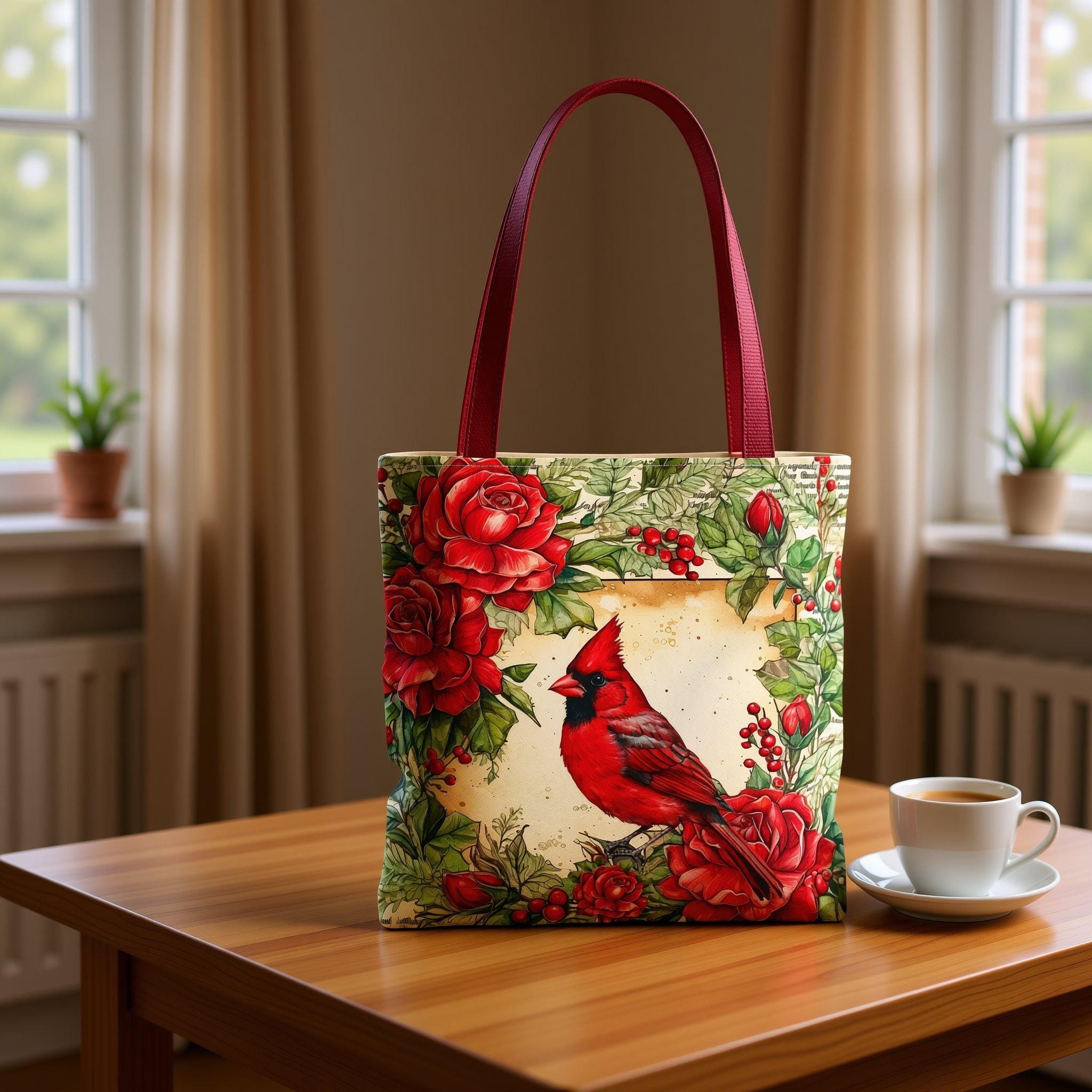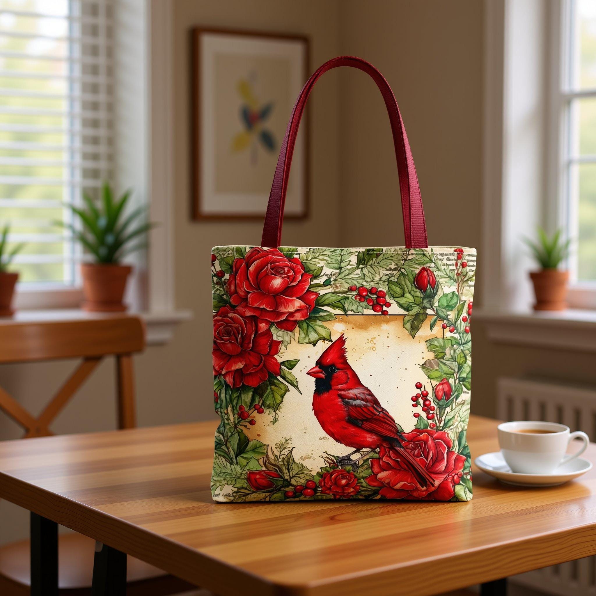 A Cardinal Bird Floral Tote Bag perfect for nature lovers and bird enthusiasts. This versatile tote bag is ideal for everyday use, whether for running errands or carrying books. The vibrant design and durable polyester fabric make it a great addition to any outfit. Perfect for gifting on occasions like birthdays, Mother's Day, or as a thoughtful thank you gift.