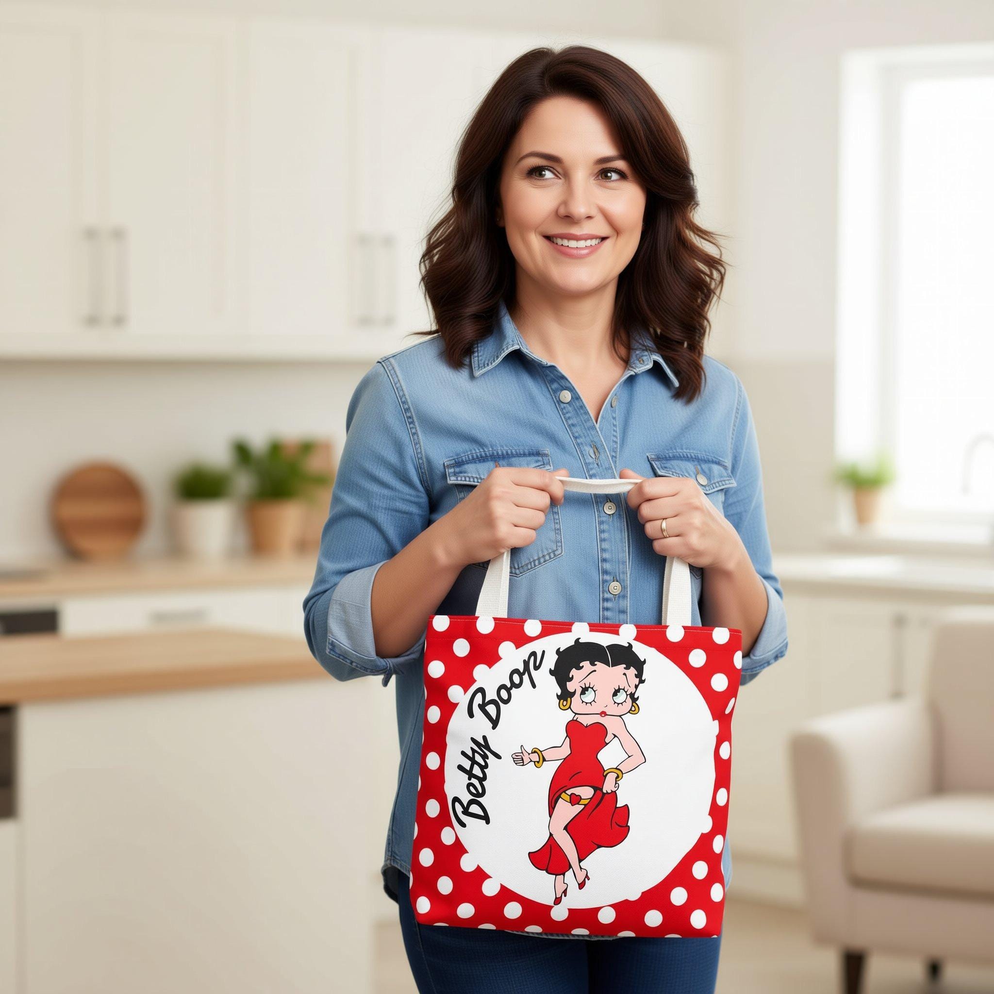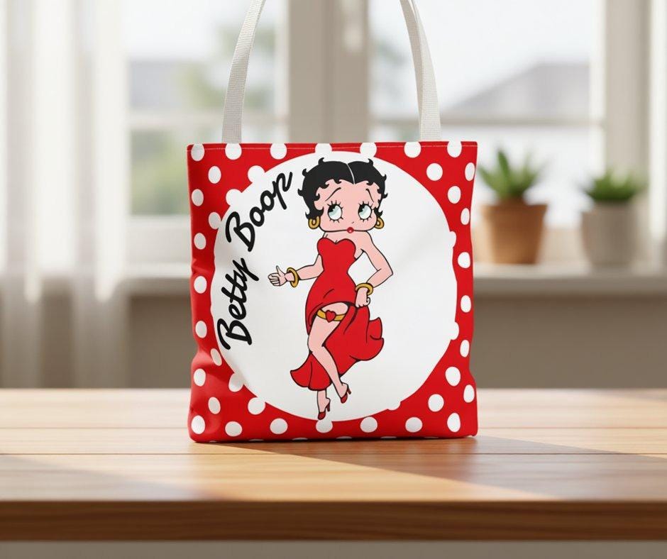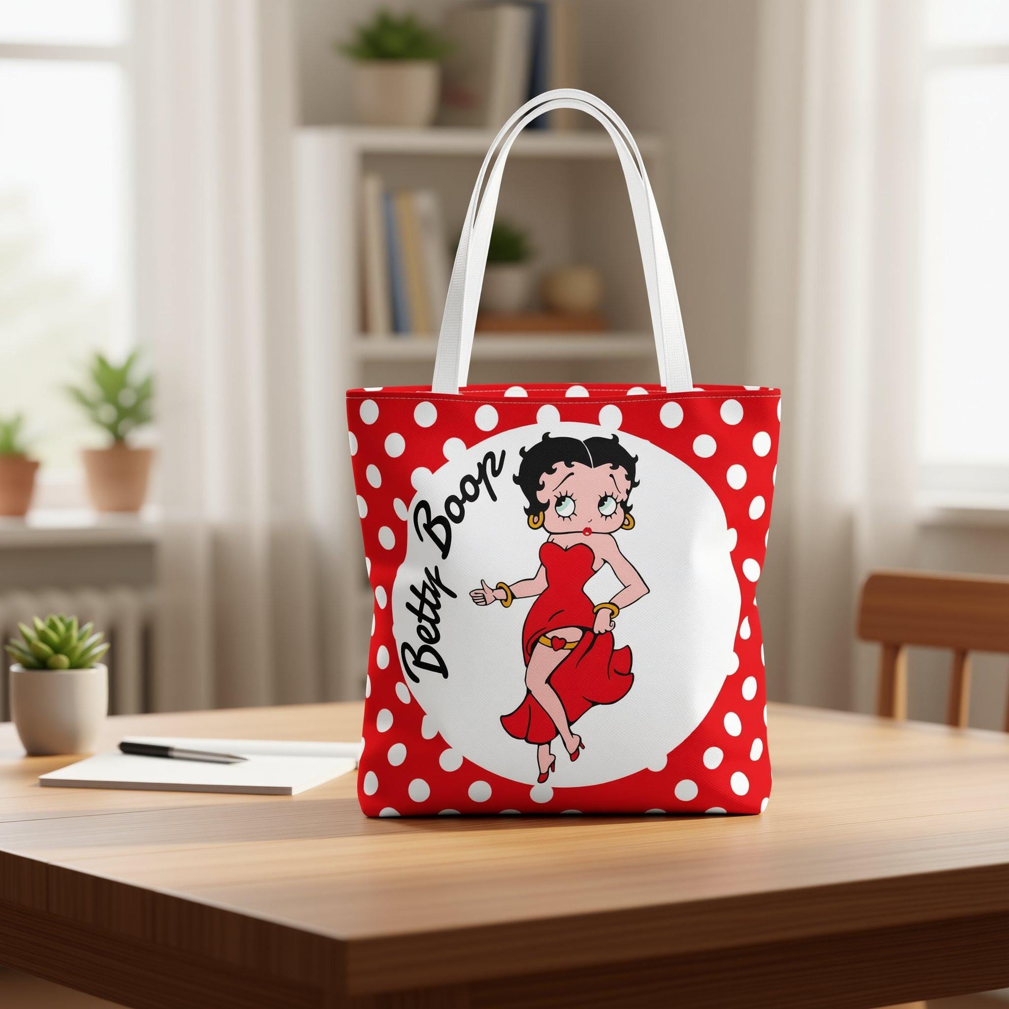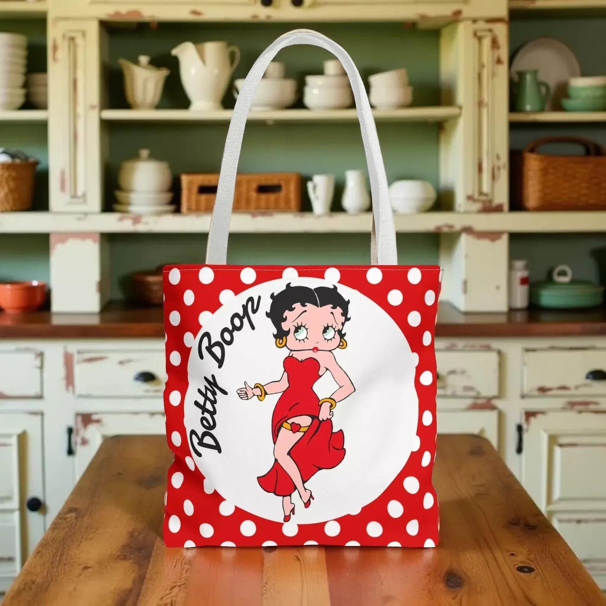 Add a splash of retro charm to your daily routine with this Betty Boop tote, a perfect blend of vintage style and practical design. Whether you're heading out for errands or meeting friends, this casual bag offers a fun print bag appeal that stands out effortlessly. Crafted for fans of unique design and those who love quirky bags, it’s an ideal accessory to express your personality.