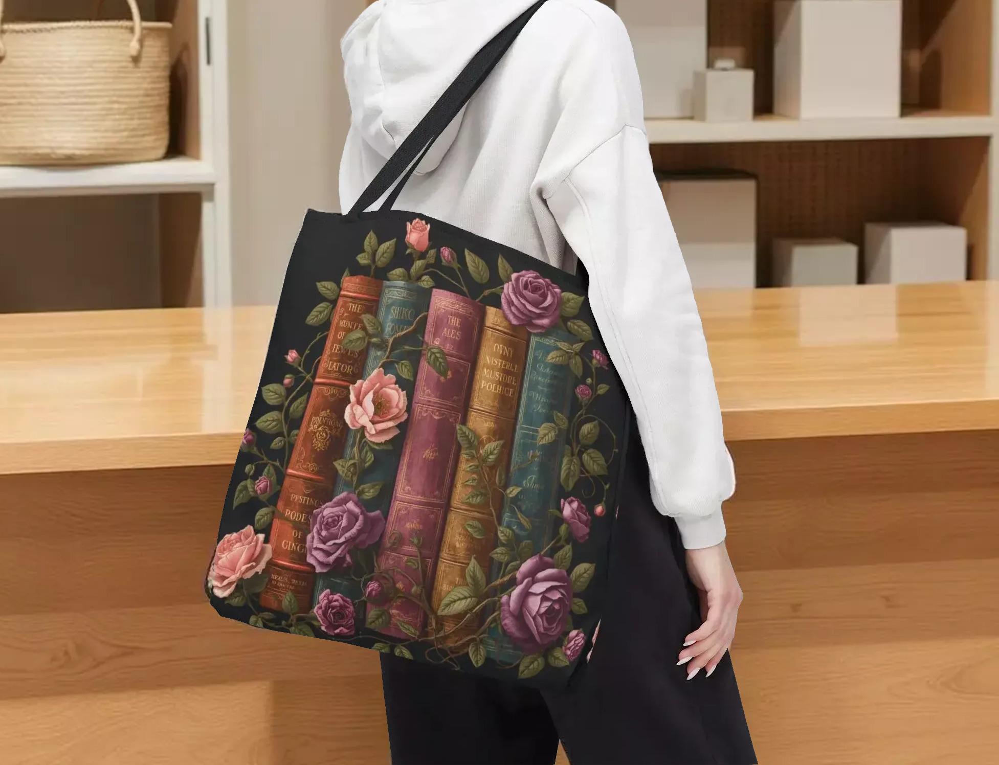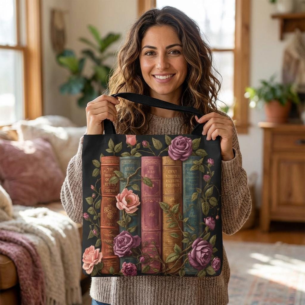 Step into a world where vintage floral charm meets practical design with this rosebound library carryall tote. Inspired by the quiet corners of used-bookshops, this tote captures the essence of climbing roses entwined around leather-bound books, making it a perfect companion for lovers of unique, story-filled objects. Whether you're heading to the market or carrying your favorite reads, this vintage floral tote blends timeless beauty with everyday function.