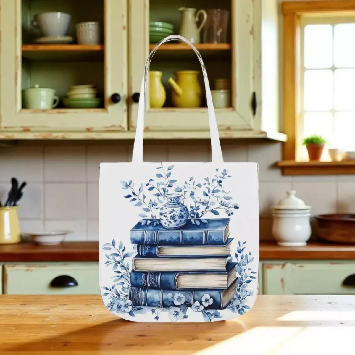 Discover the perfect companion for your daily adventures with this blue floral books canvas tote, designed to blend style and function effortlessly. Inspired by serene watercolor art, this tote features a delicate stack of books and floral accents, ideal for book lovers and market-goers alike. Lightweight and roomy, it offers a calm, literary look that suits café visits, study sessions, or weekend strolls.
