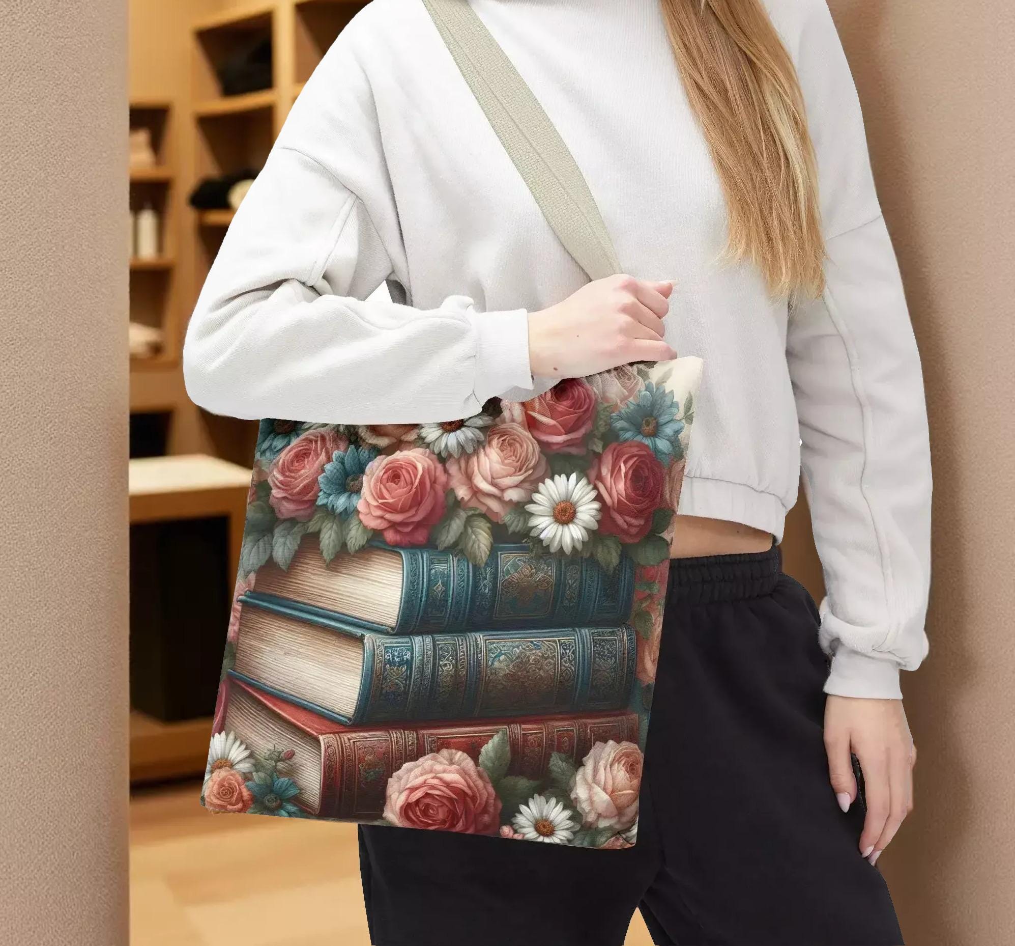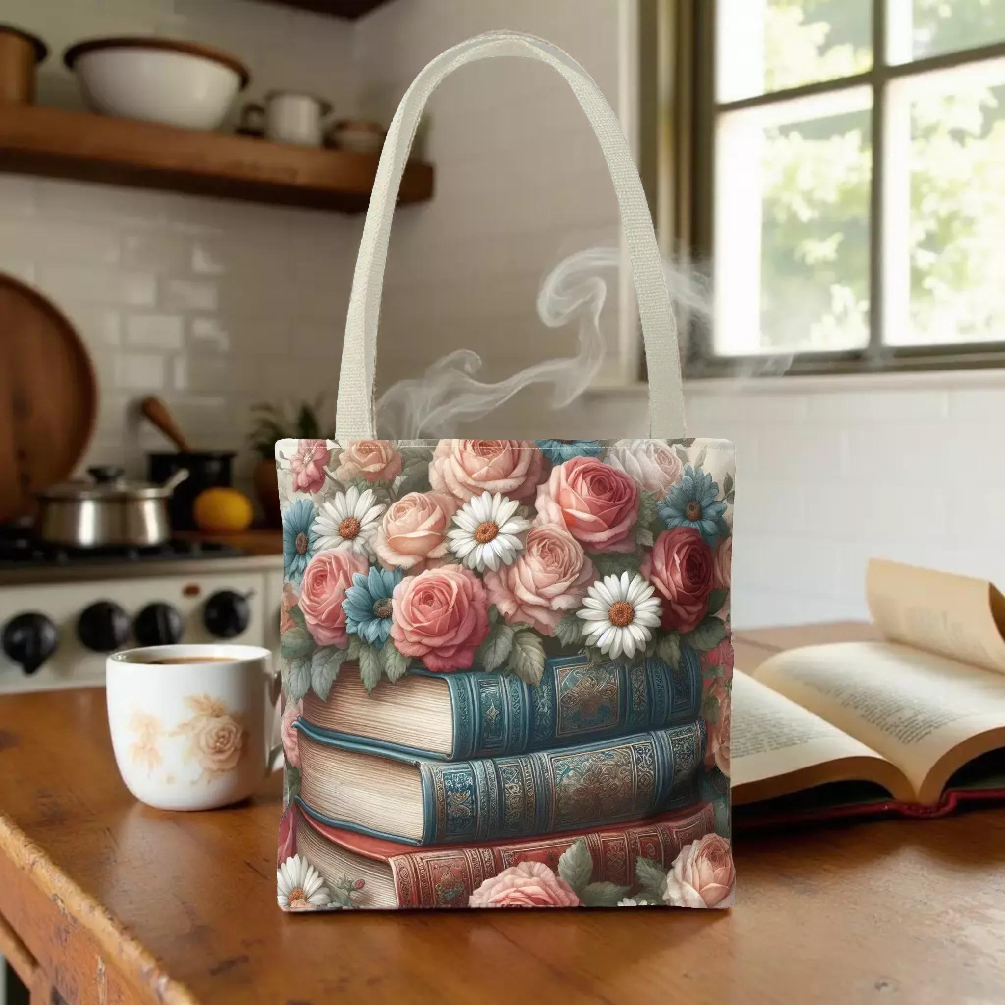 Step into a world where vintage charm meets everyday practicality with this floral vintage look tote bag. Inspired by the gentle beauty of roses and daisies intertwined with stacked books, this carryall is perfect for lovers of nostalgic details and thoughtful design. Whether you're heading to the market, bookstore, or a quiet picnic, this tote blends style and function effortlessly.