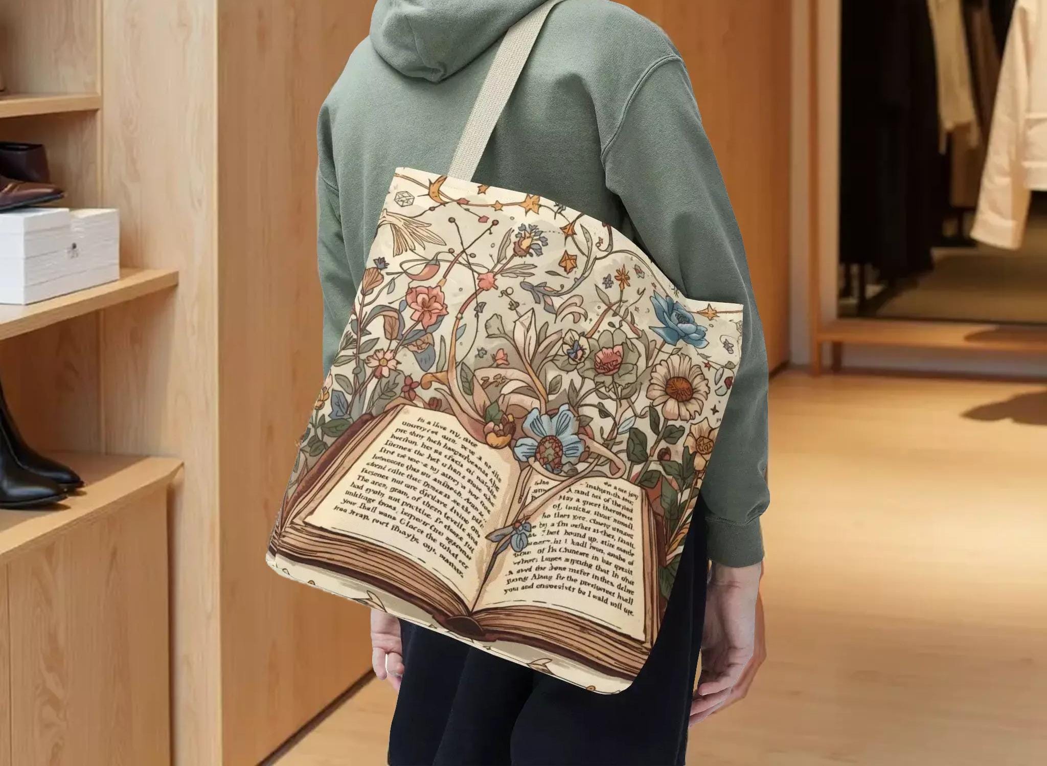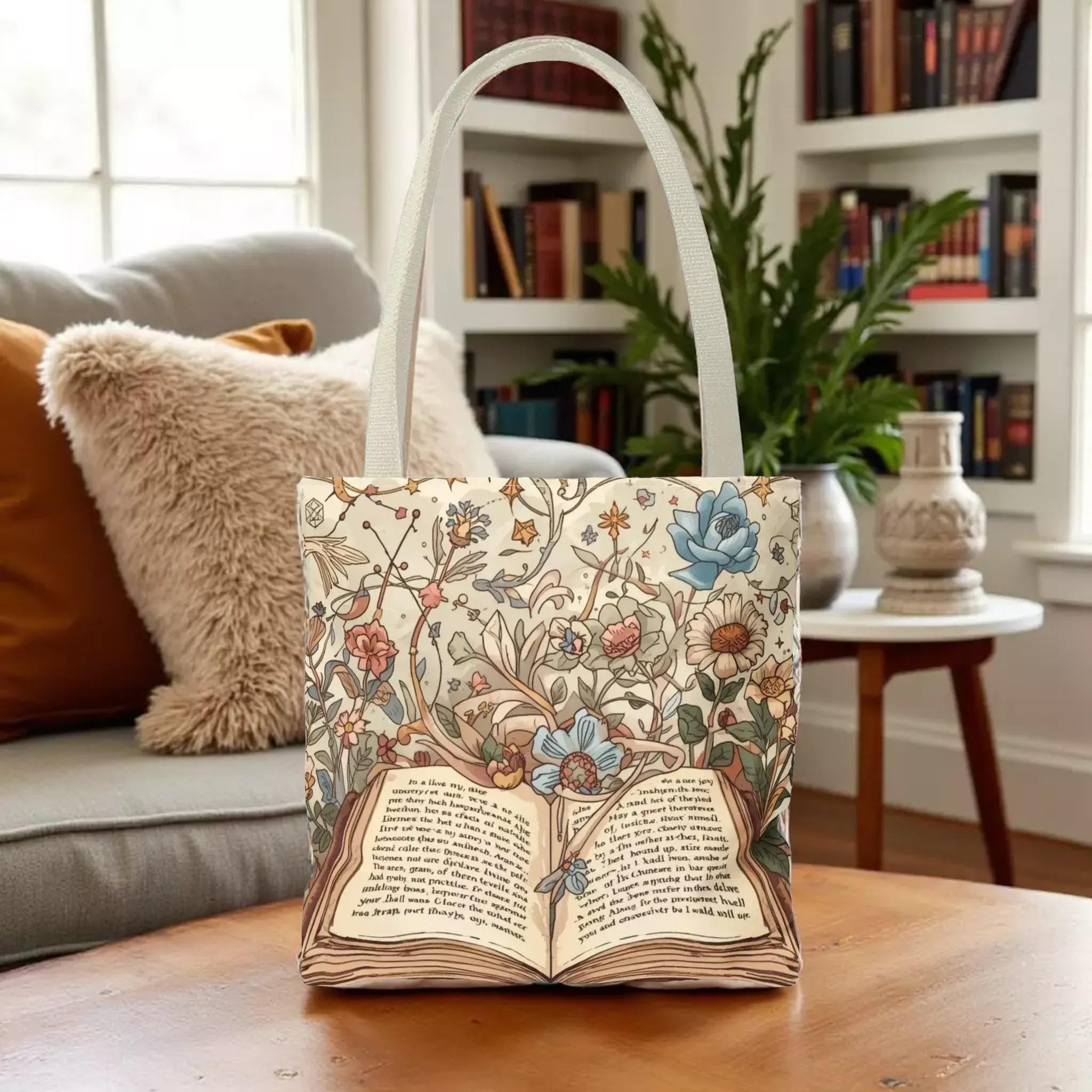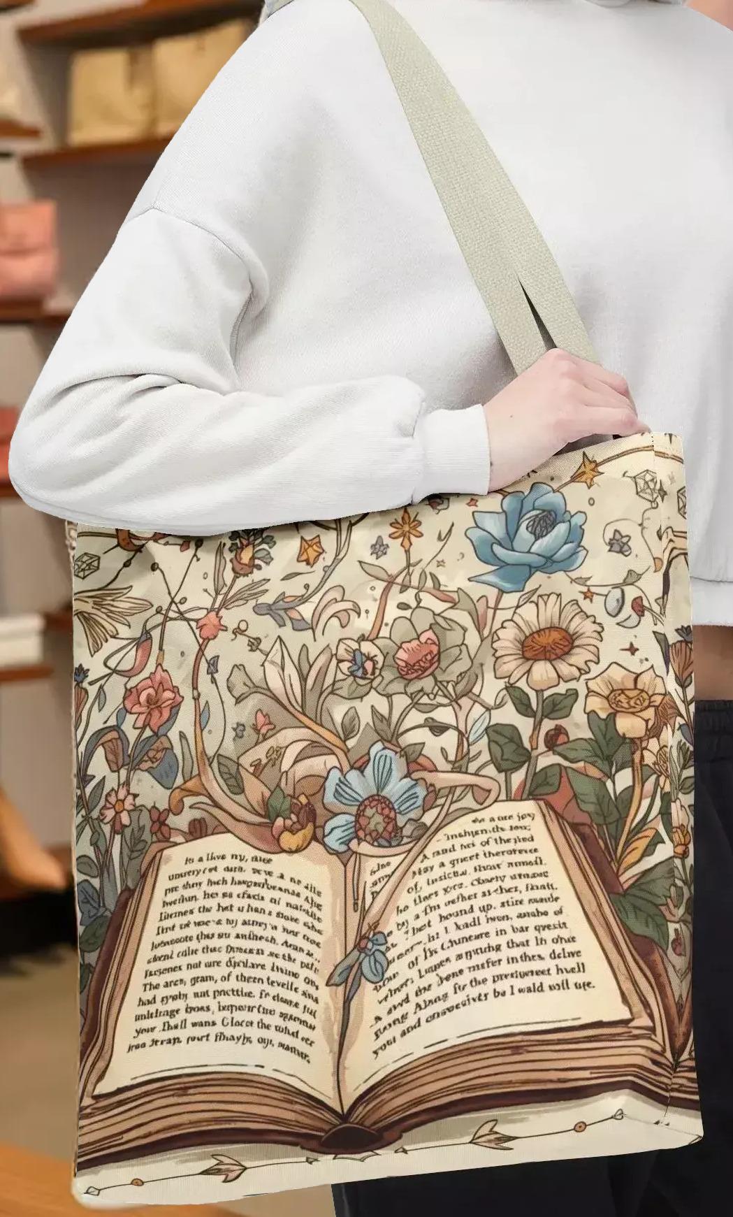 Step into a world where vintage charm meets everyday practicality with this open book bag, a floral illustration design carryall shopping tote that feels like a page from an old storybook. Inspired by the gentle spill of wildflowers and ivy, this tote blends botanical whimsy with durable craftsmanship, perfect for those who cherish printed pages and quiet moments. Whether you're heading to the market, library, or park, this floral tote carries your essentials with timeless style and ease.