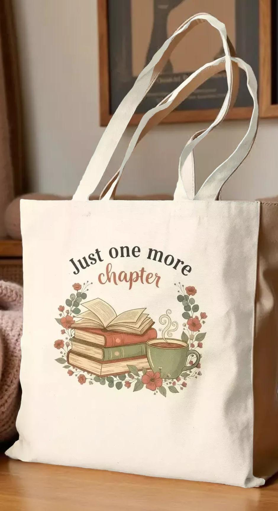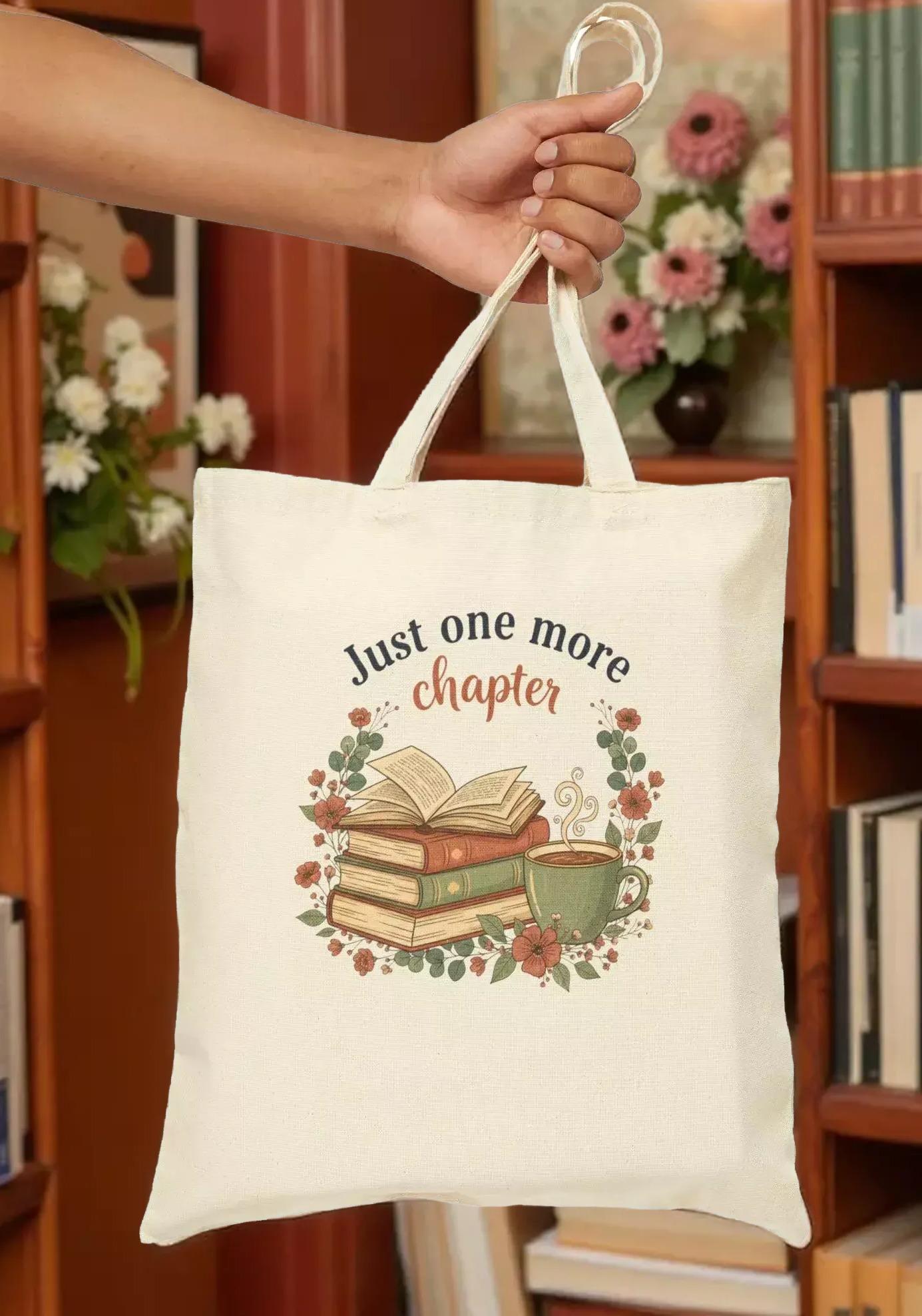 For book lovers who cherish every page, this canvas tote is designed to carry your favorite novels and essentials with ease. Crafted from durable cotton canvas, it features a charming "just one more chapter" design surrounded by delicate floral accents, perfect for cozy coffee shop afternoons or weekend book swaps. The personalized name option on the back adds a subtle, handcrafted touch that makes this tote uniquely yours.