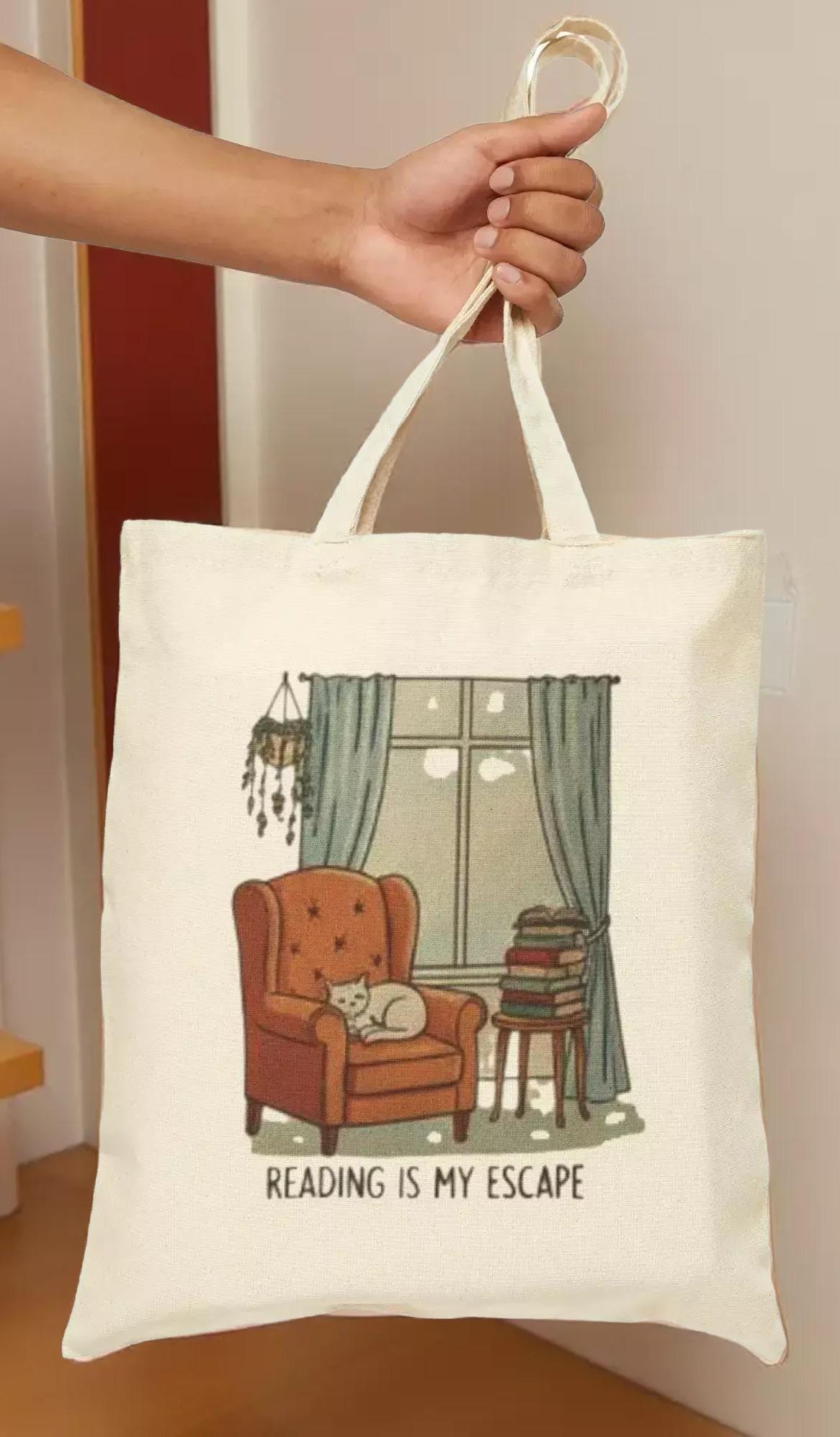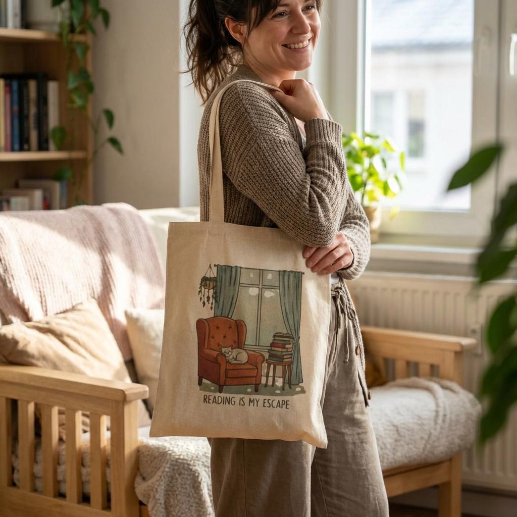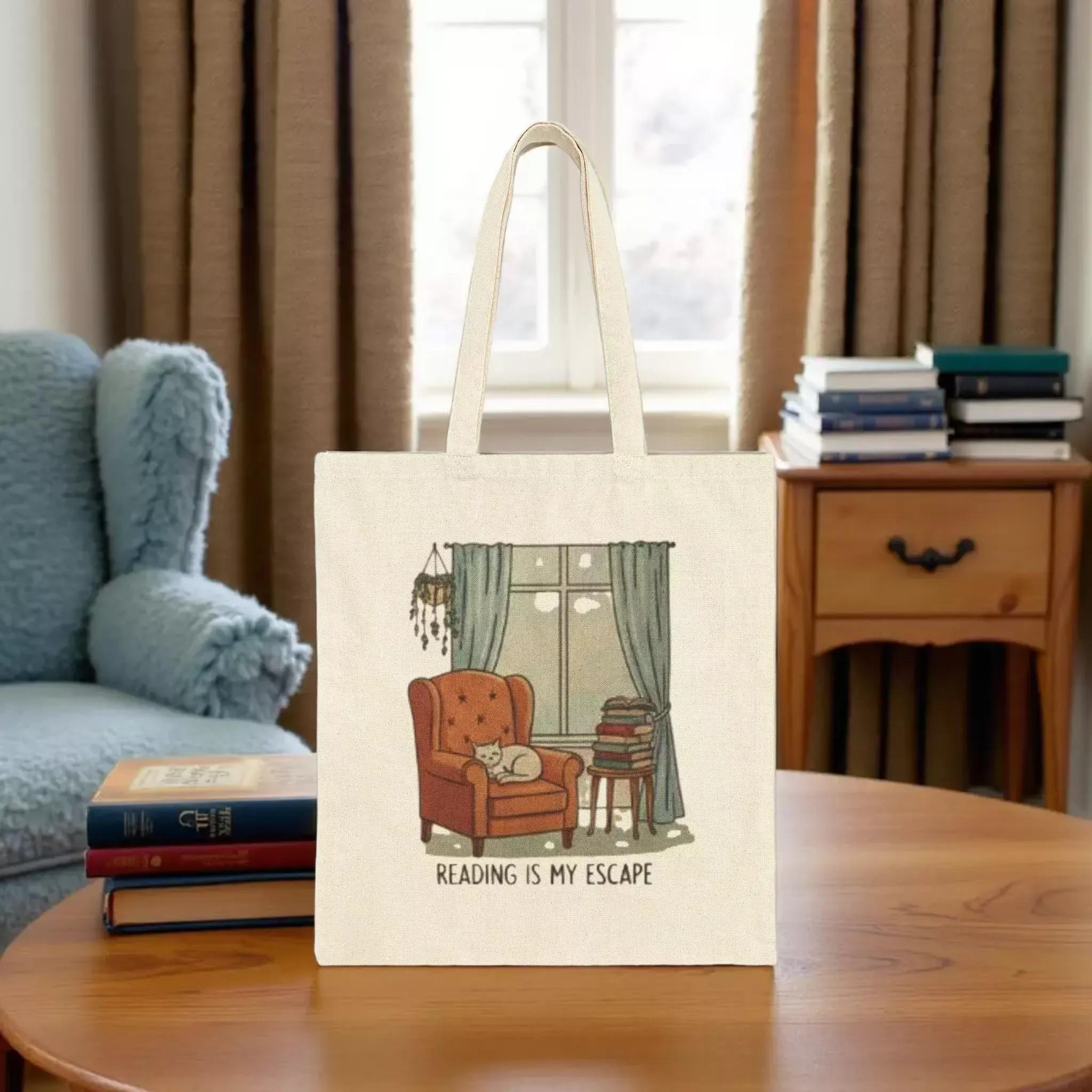 Escape into your favorite stories with this reading escape tote bag, thoughtfully designed for book lovers who cherish every quiet moment. Crafted from durable cotton canvas, this tote blends practicality with a charming booklover's vibe, perfect for carrying your paperbacks and essentials to a café or book sale. Its sturdy construction and comfortable handles make it an ideal companion for every literary adventure, embodying the spirit of slow, mindful reading.