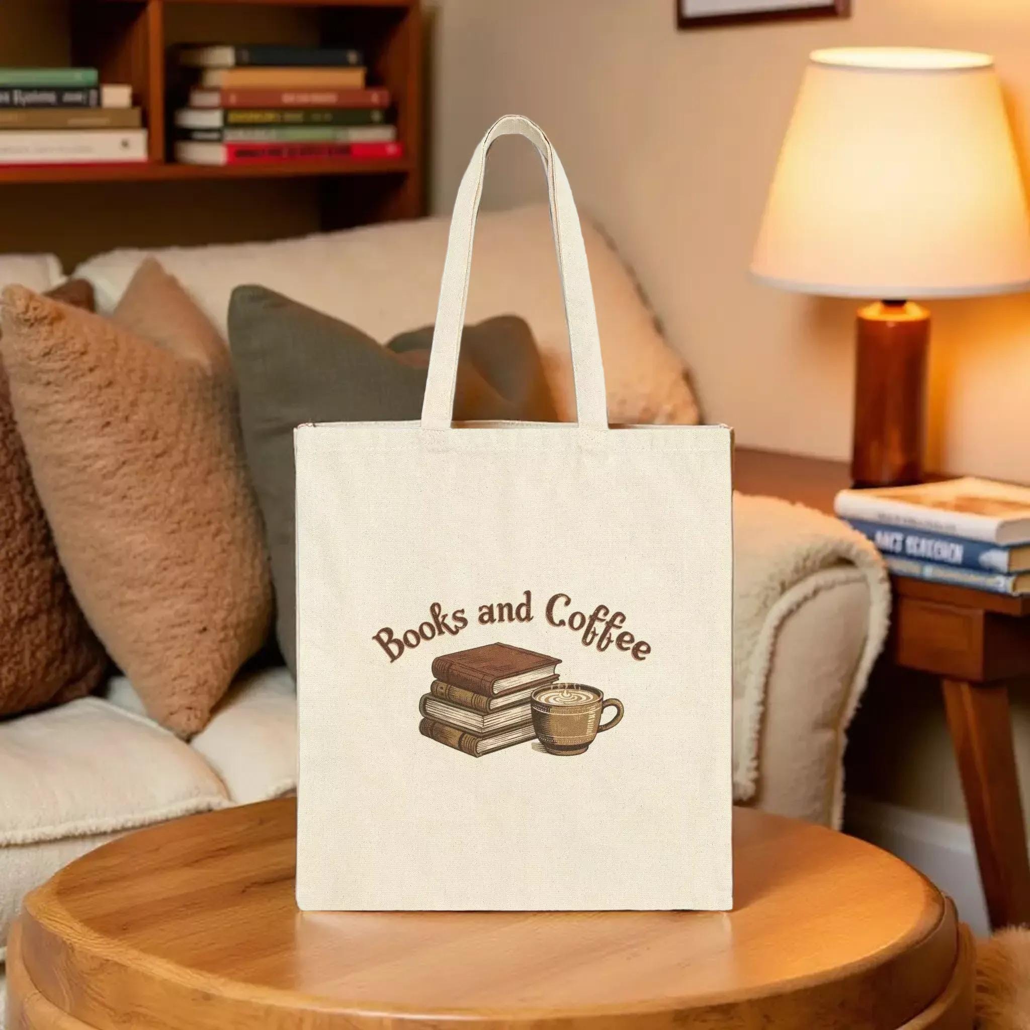 Embrace the quiet joy of your favorite morning ritual with this charming cotton canvas tote, perfect for book lovers and coffee enthusiasts alike. Designed with a cozy watercolor illustration of books and a coffee cup, this tote blends literary charm with everyday practicality. Whether you're heading to the library, a café, or the market, this booklover tote bag offers a stylish and functional way to carry your essentials.