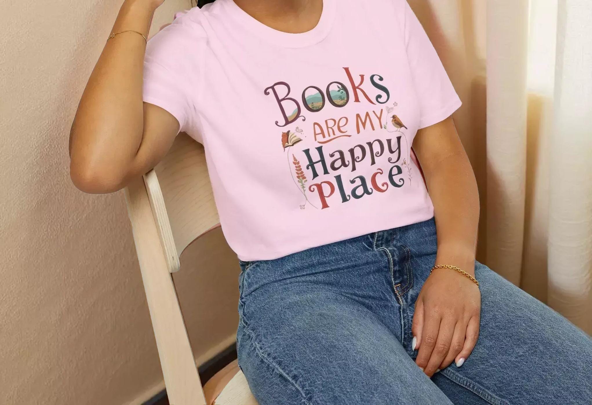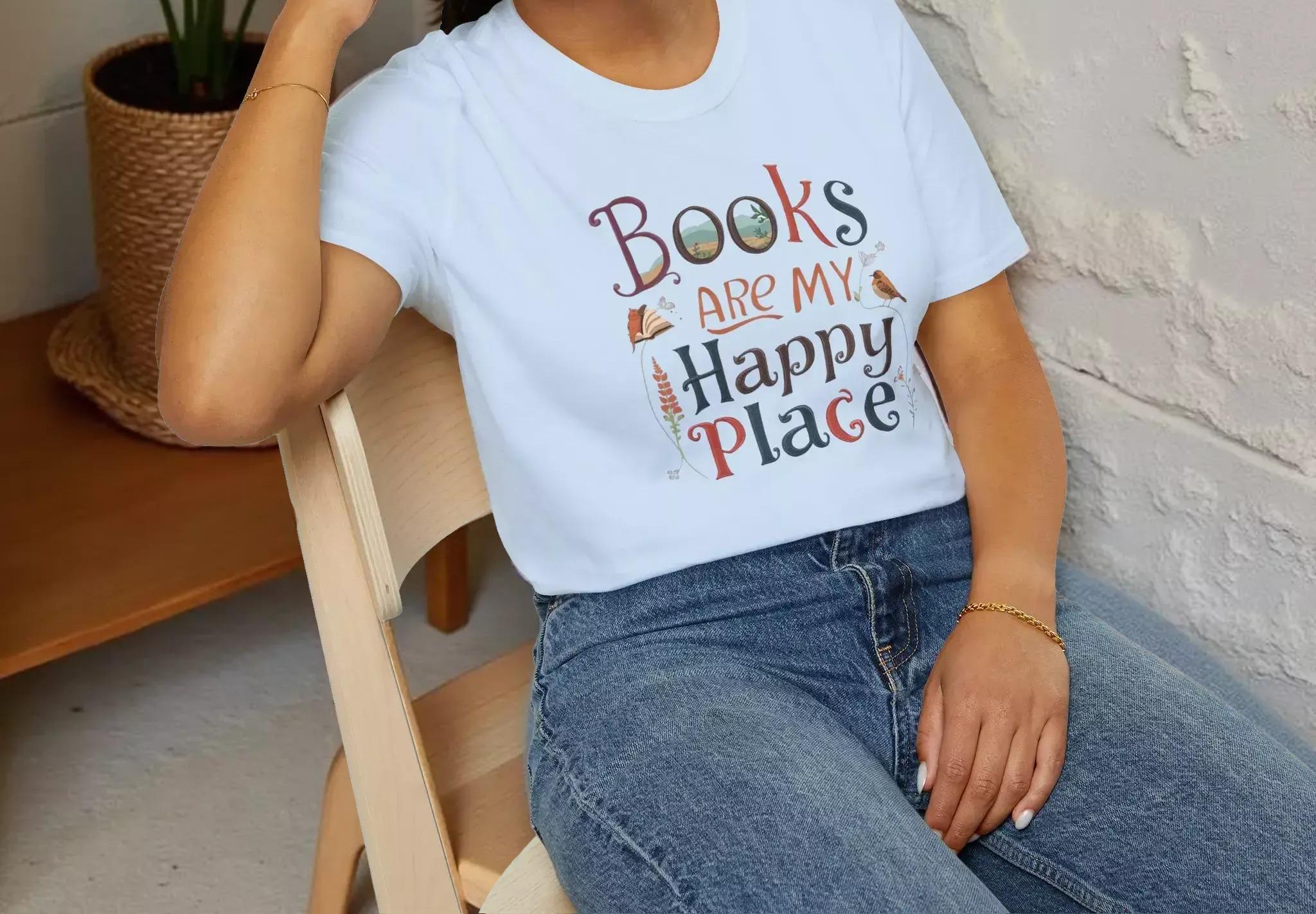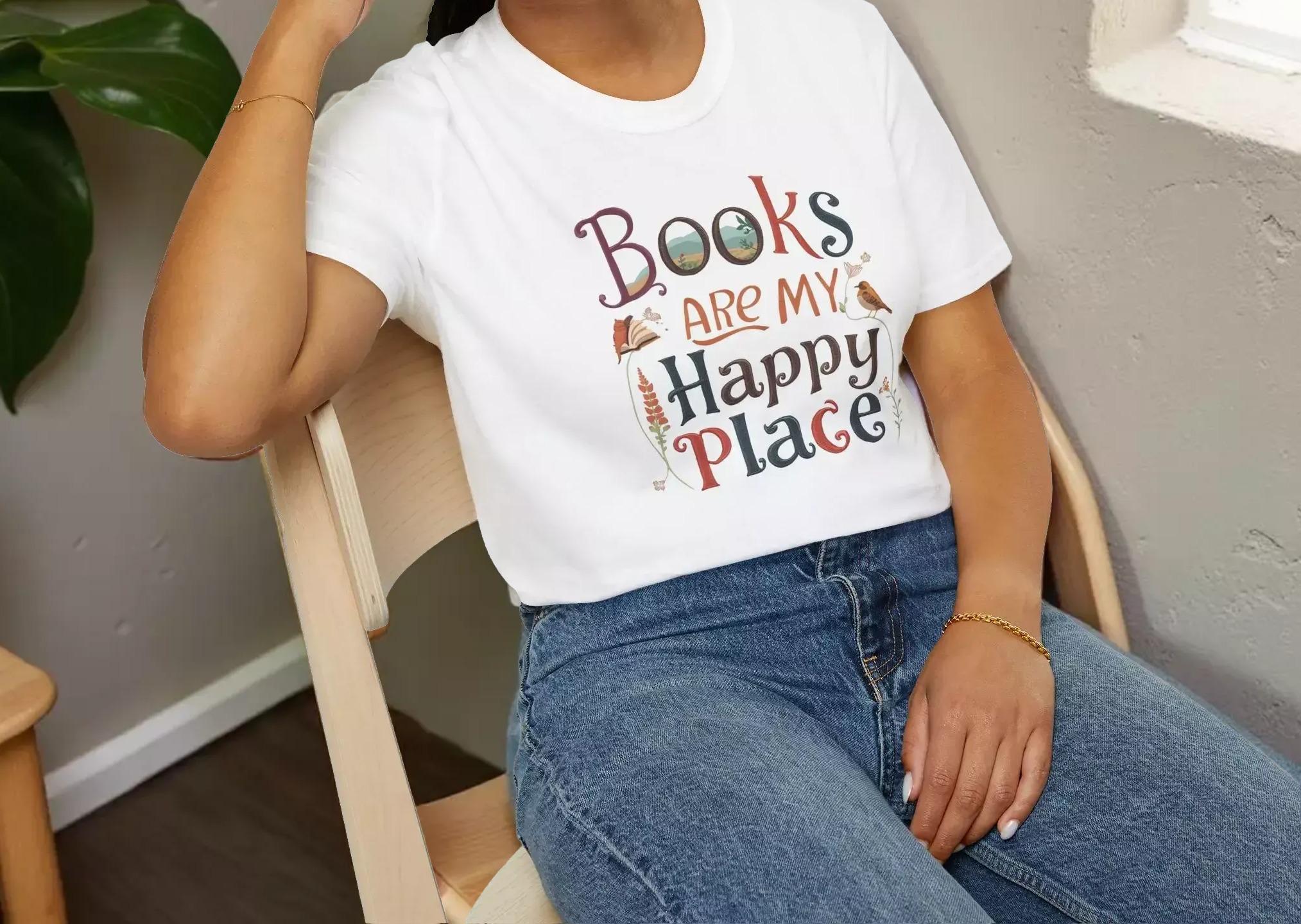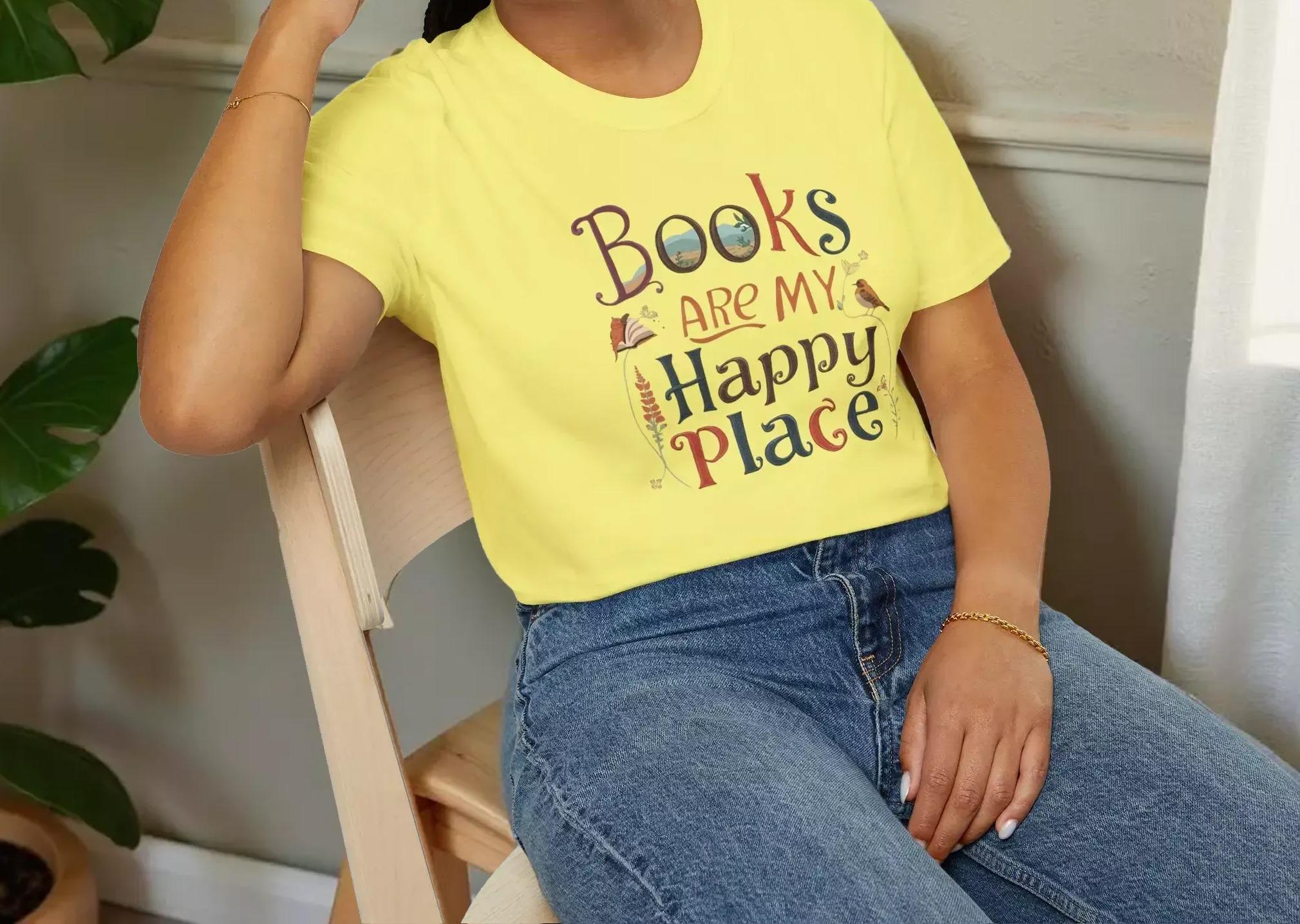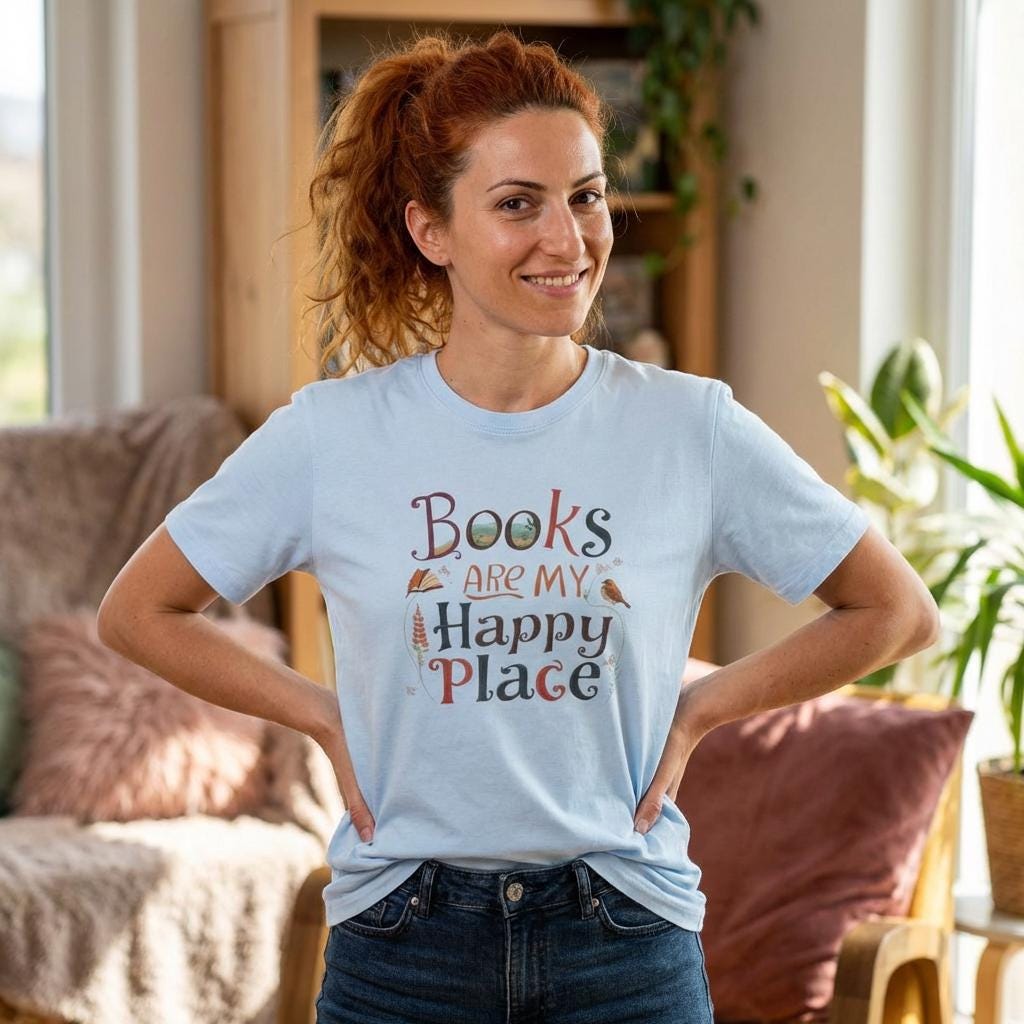 For those who cherish quiet moments with a good book, this soft cotton tee is a perfect companion. Designed for book lovers, the charming graphic tee celebrates the joy of reading and the comfort of cozy afternoons. Crafted with breathable ring-spun cotton and featuring a hand-lettered design, this shirt invites you to embrace your happy place in style.