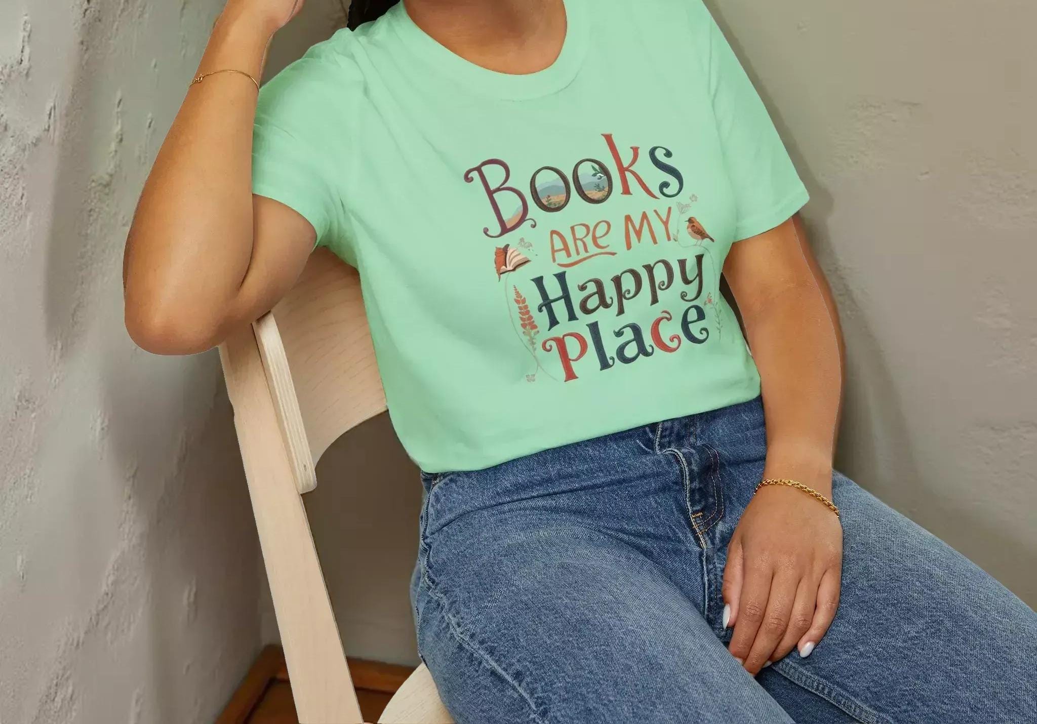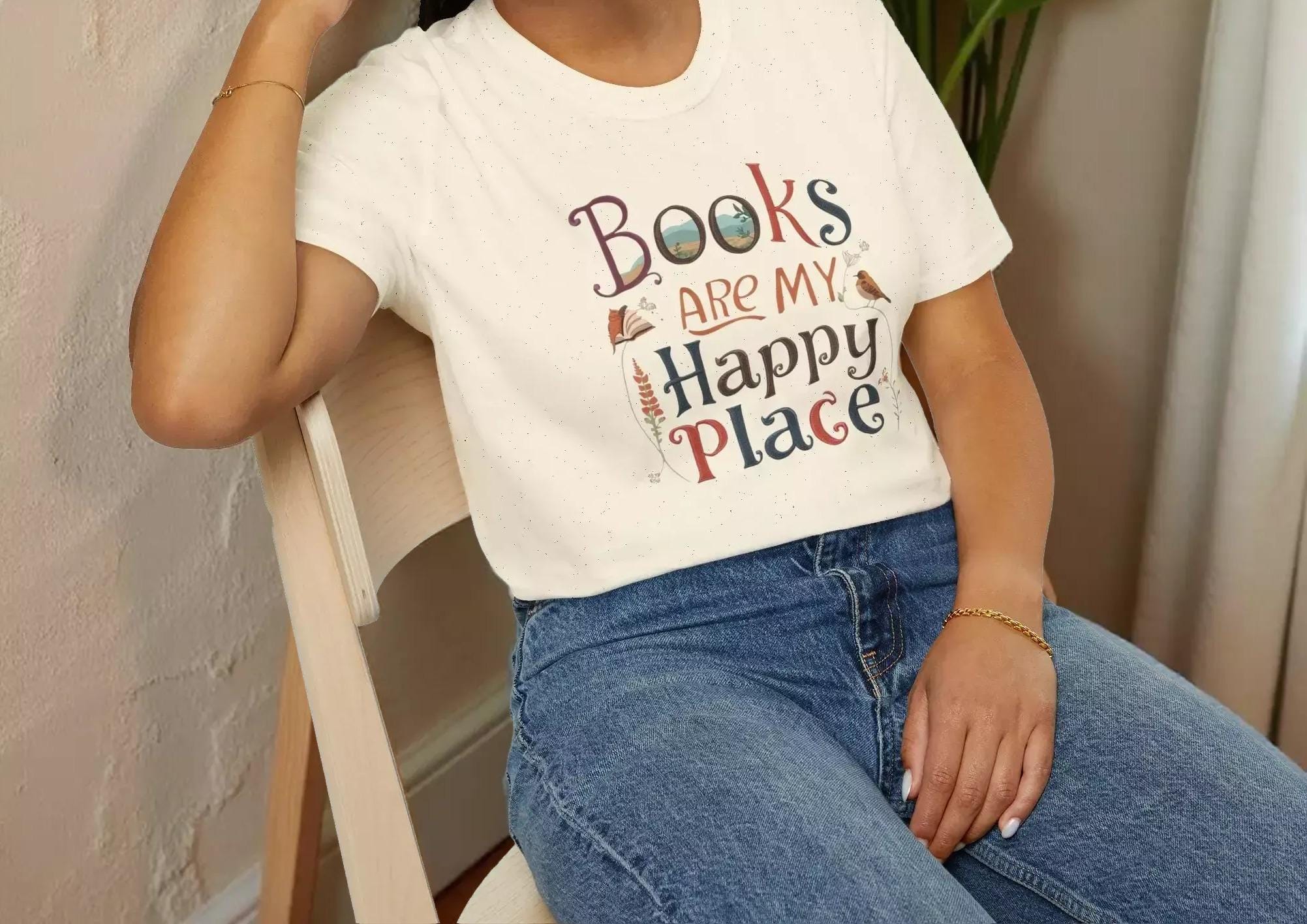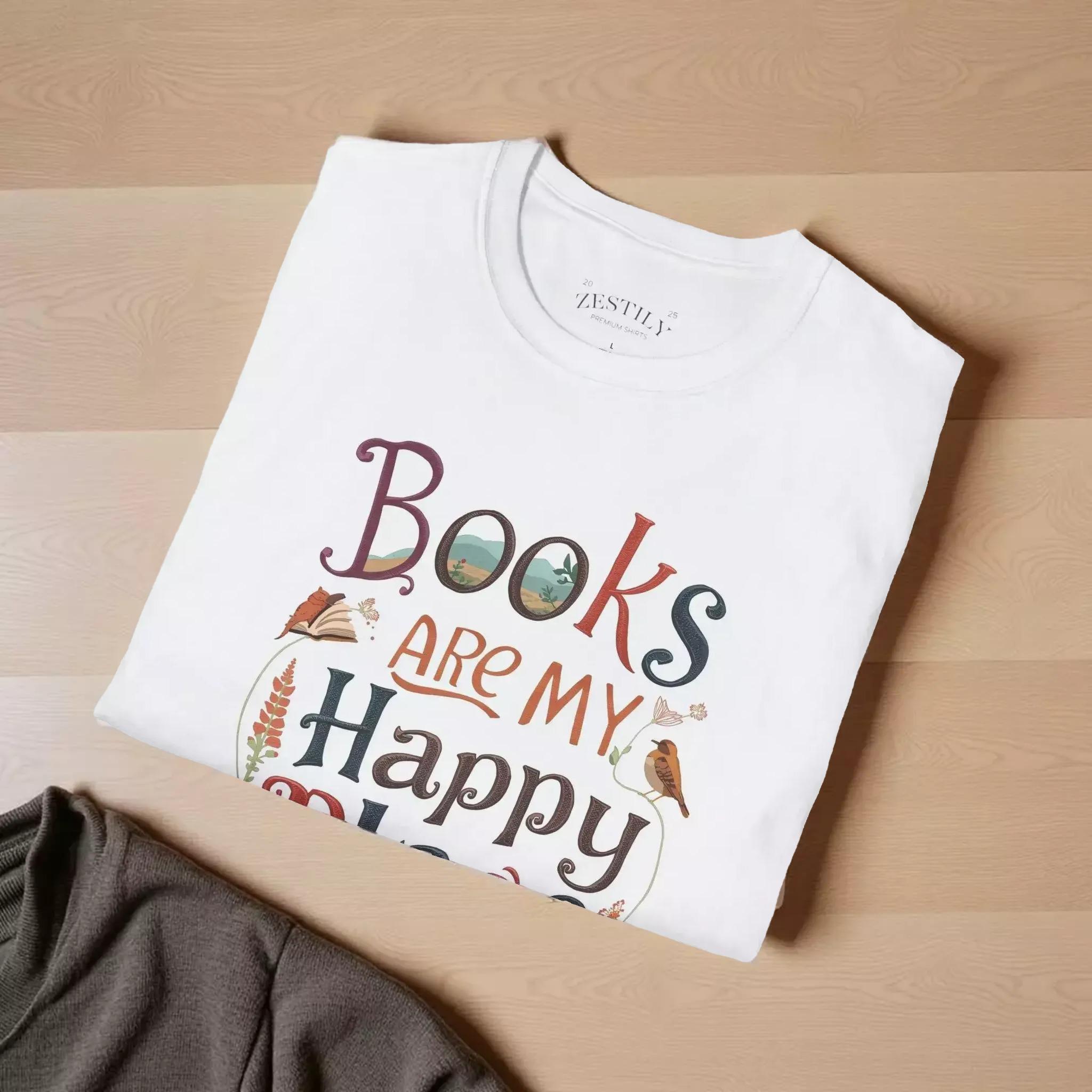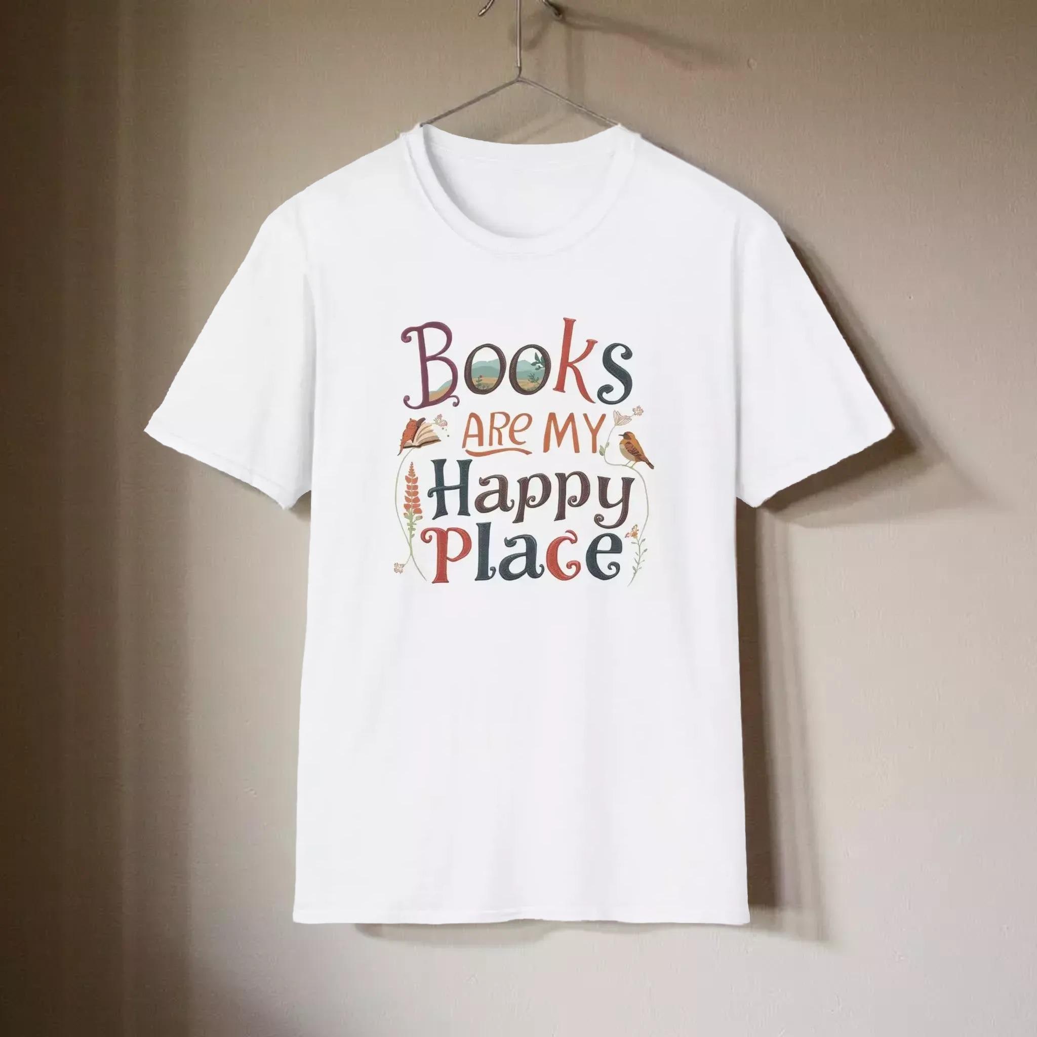 For those who cherish quiet moments with a good book, this soft cotton tee is a perfect companion. Designed for book lovers, the charming graphic tee celebrates the joy of reading and the comfort of cozy afternoons. Crafted with breathable ring-spun cotton and featuring a hand-lettered design, this shirt invites you to embrace your happy place in style.