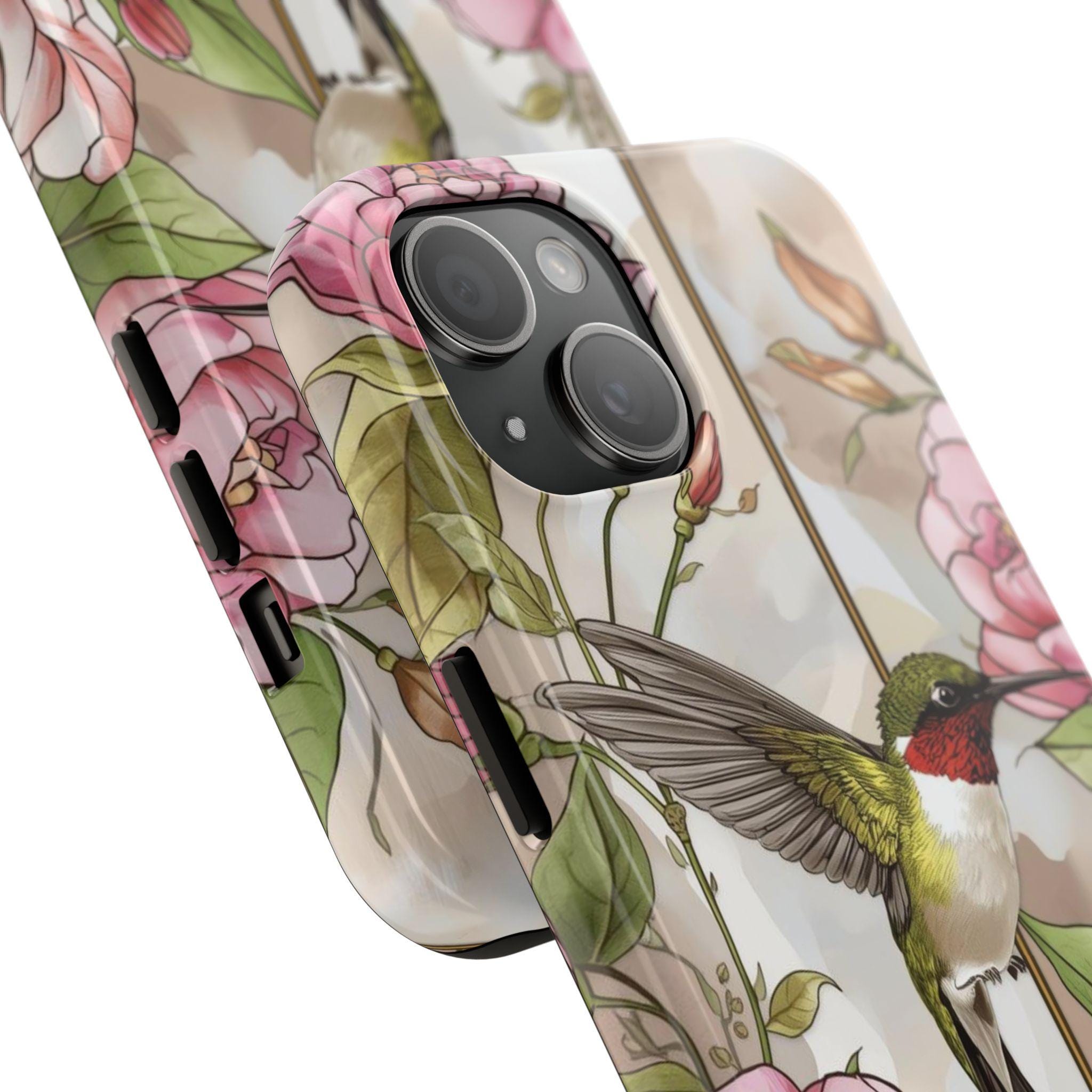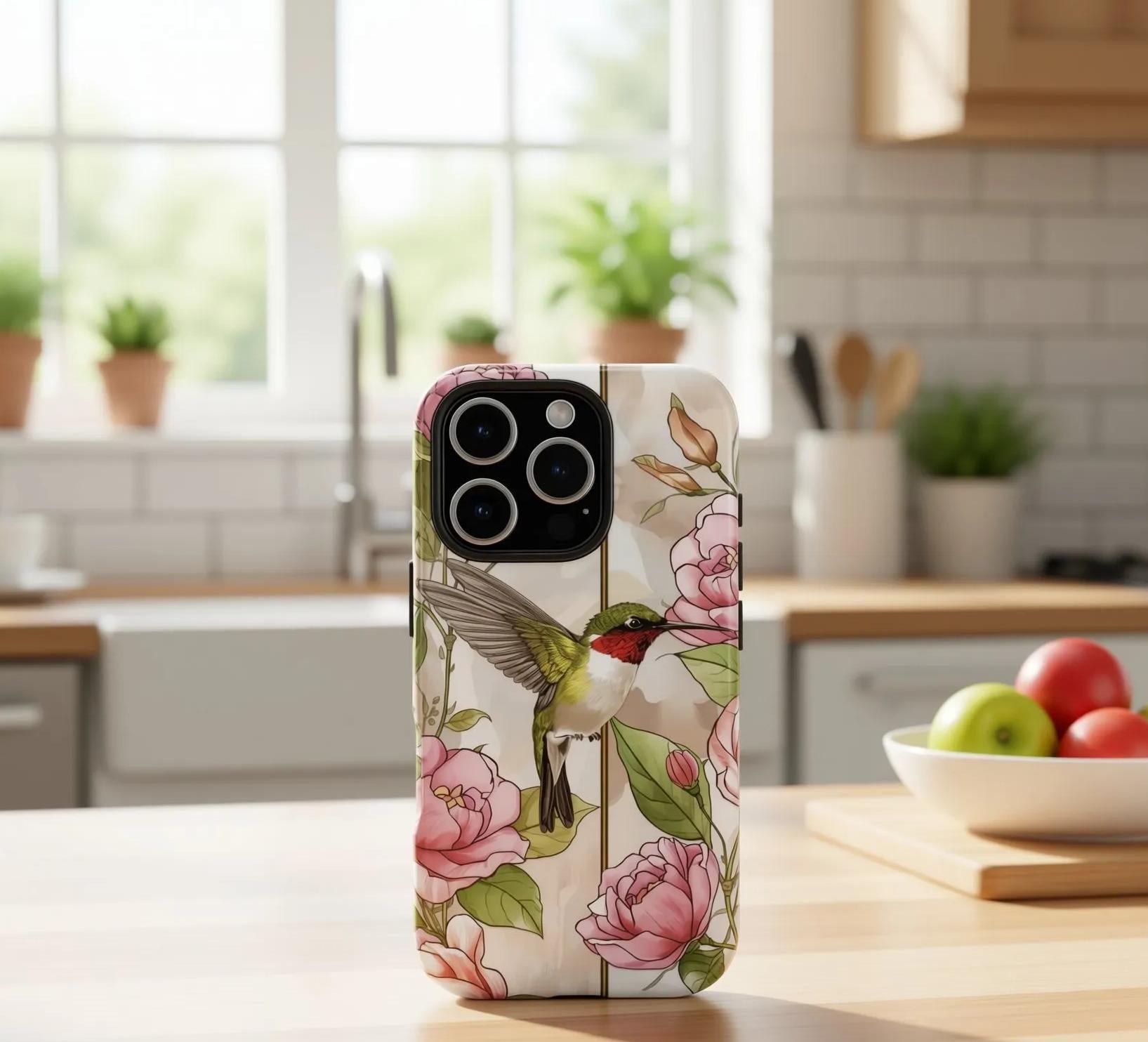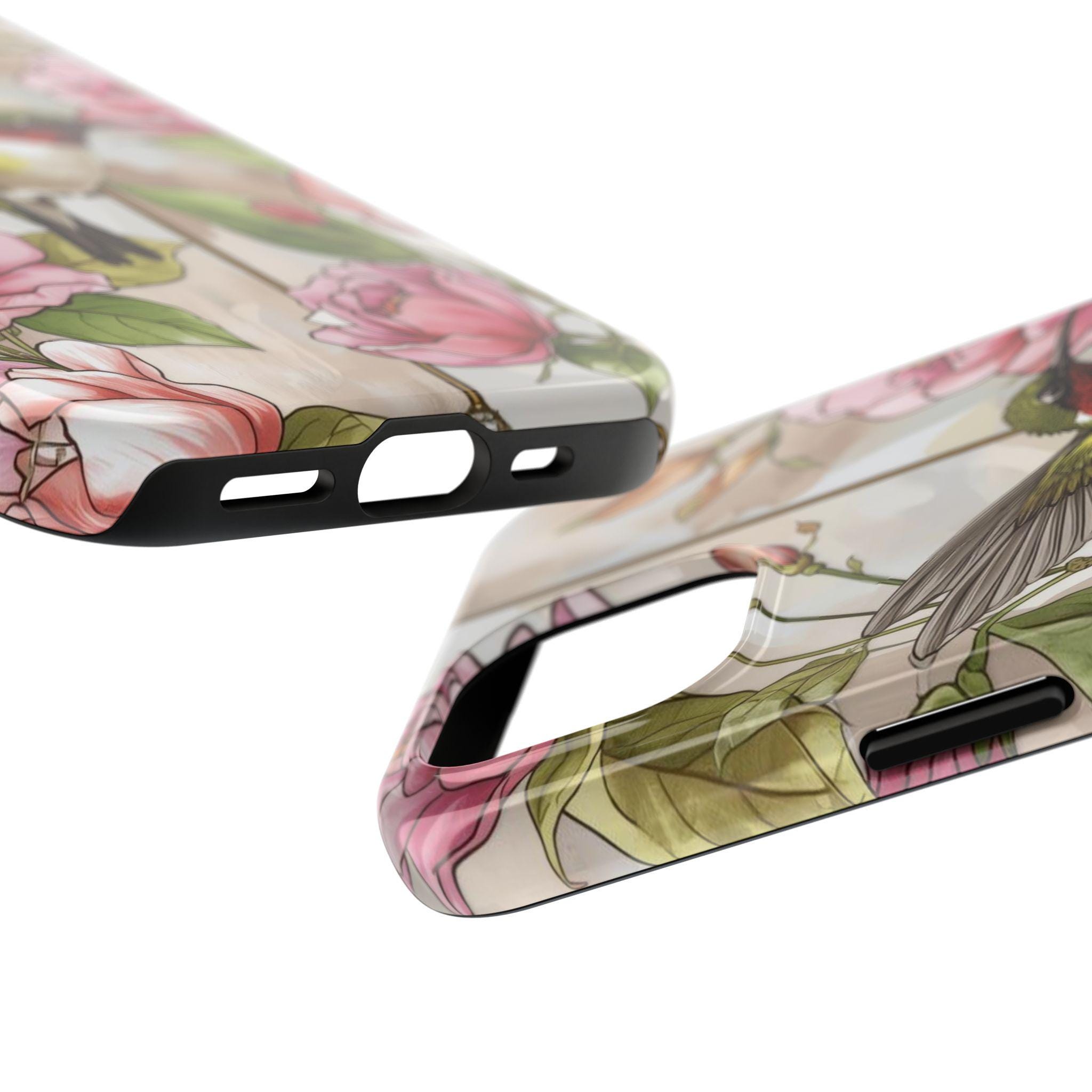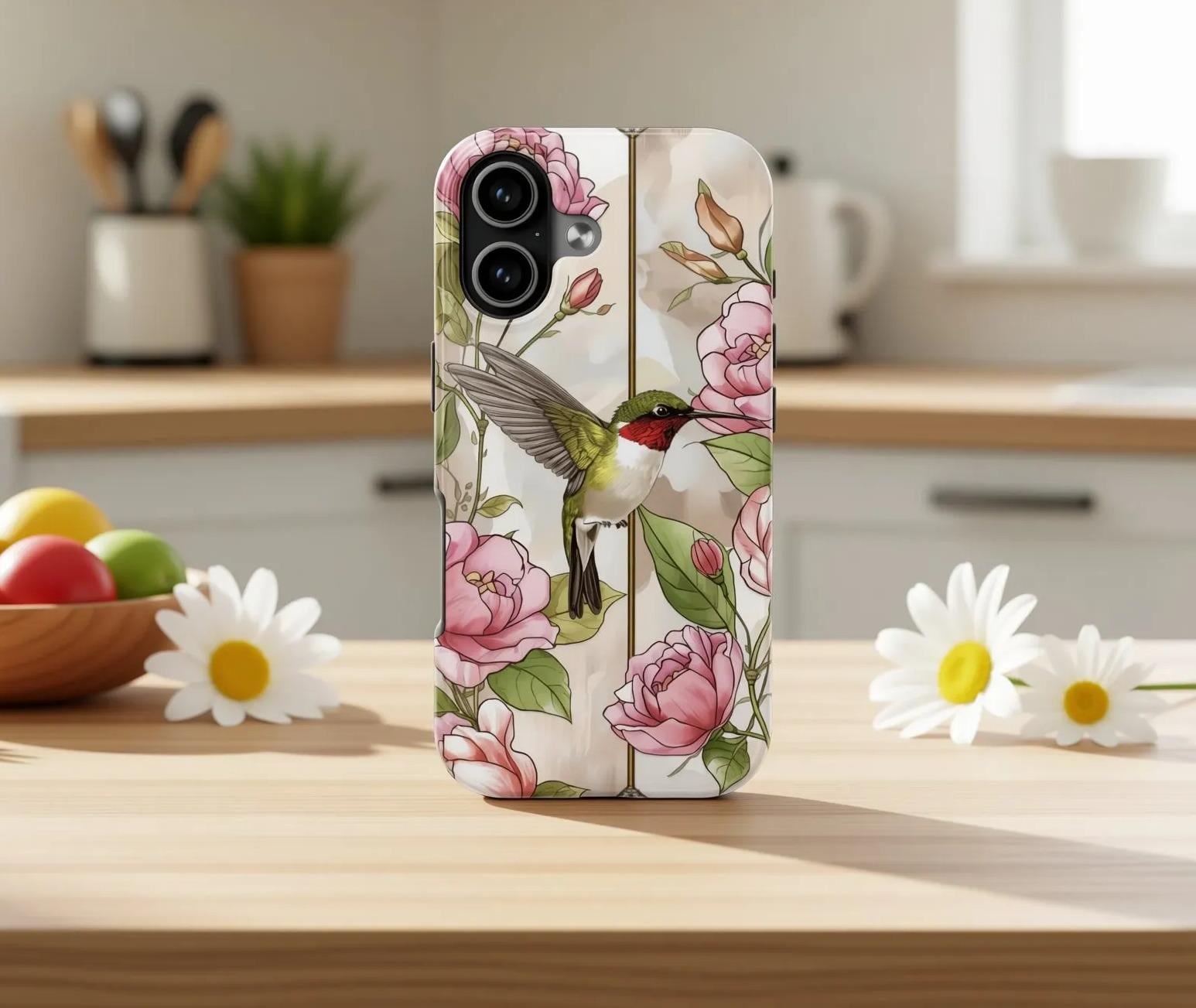 Step into a pocket-sized garden where delicate pink peonies bloom alongside a vibrant hummingbird, captured in crisp, glossy color. This floral protective cover combines beauty and function, designed to shield your phone with style. Crafted for those who appreciate nature-inspired art and durable design, this tough phone case offers lightweight protection without compromising on elegance.