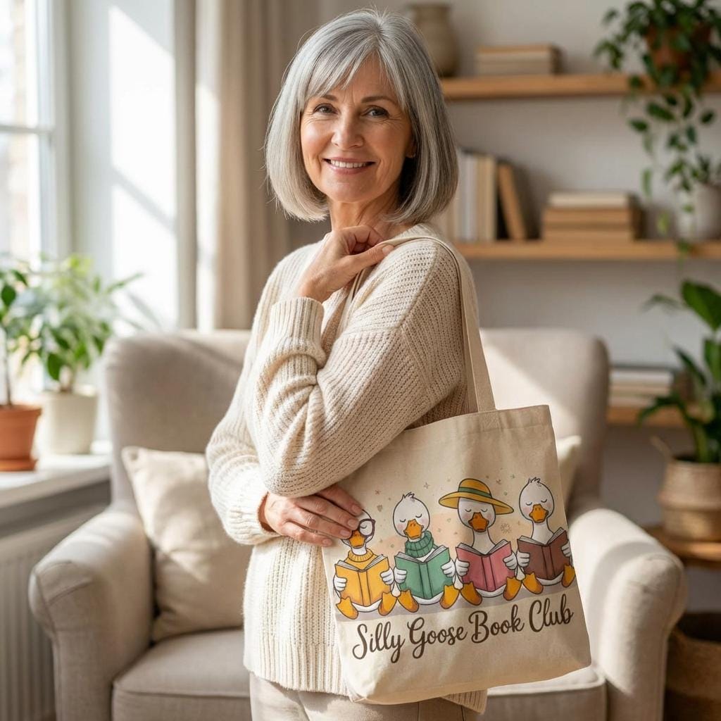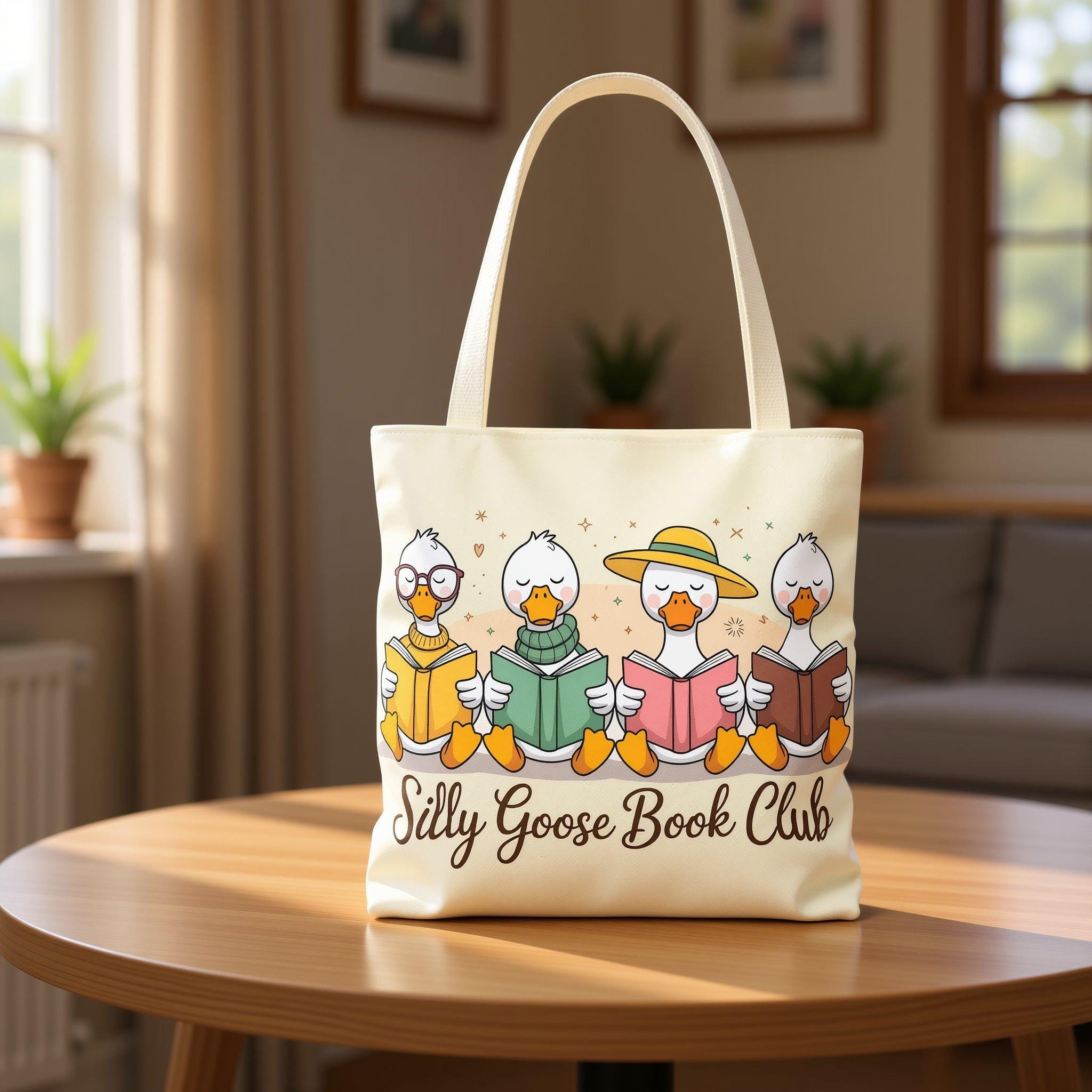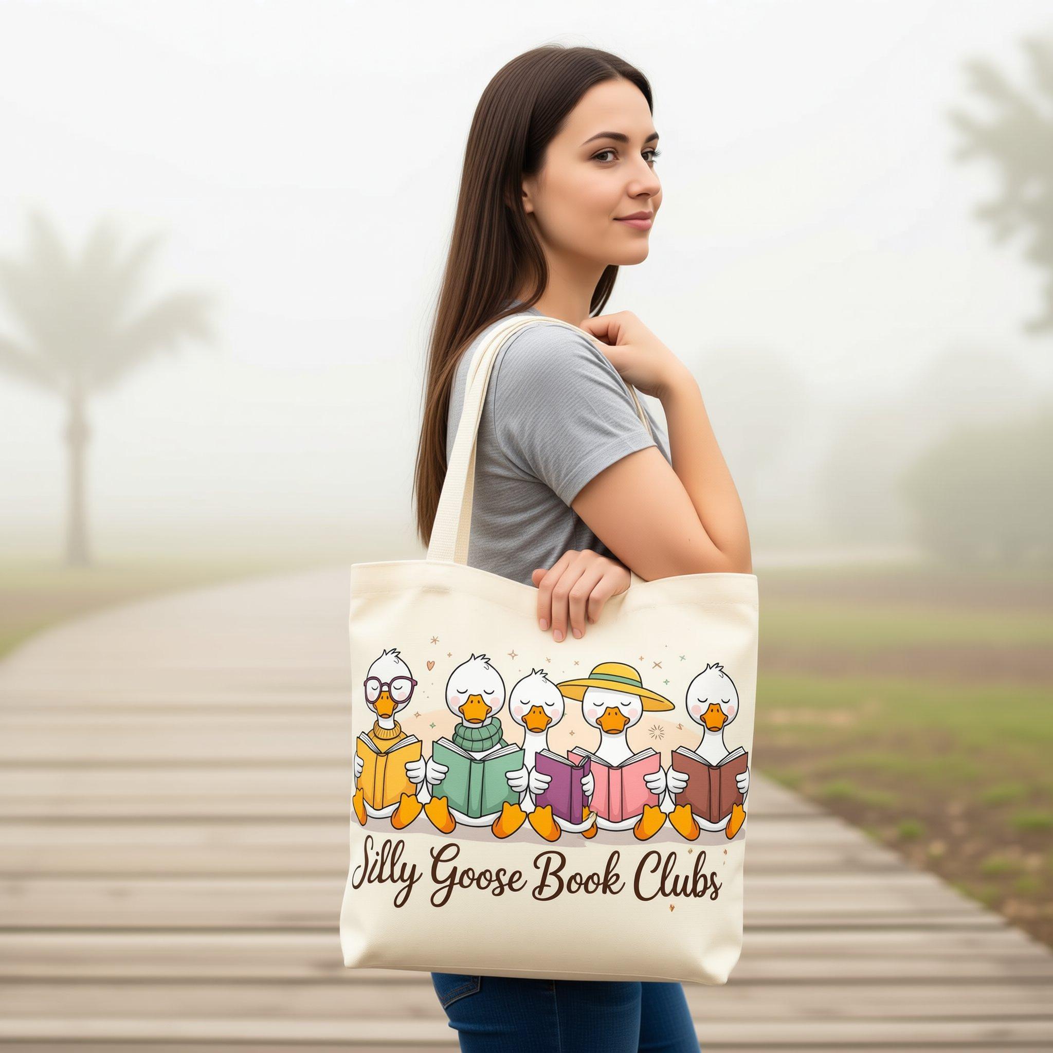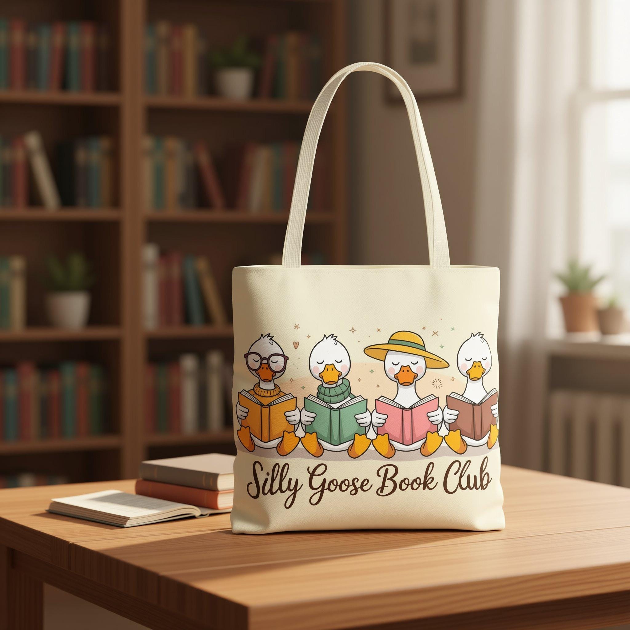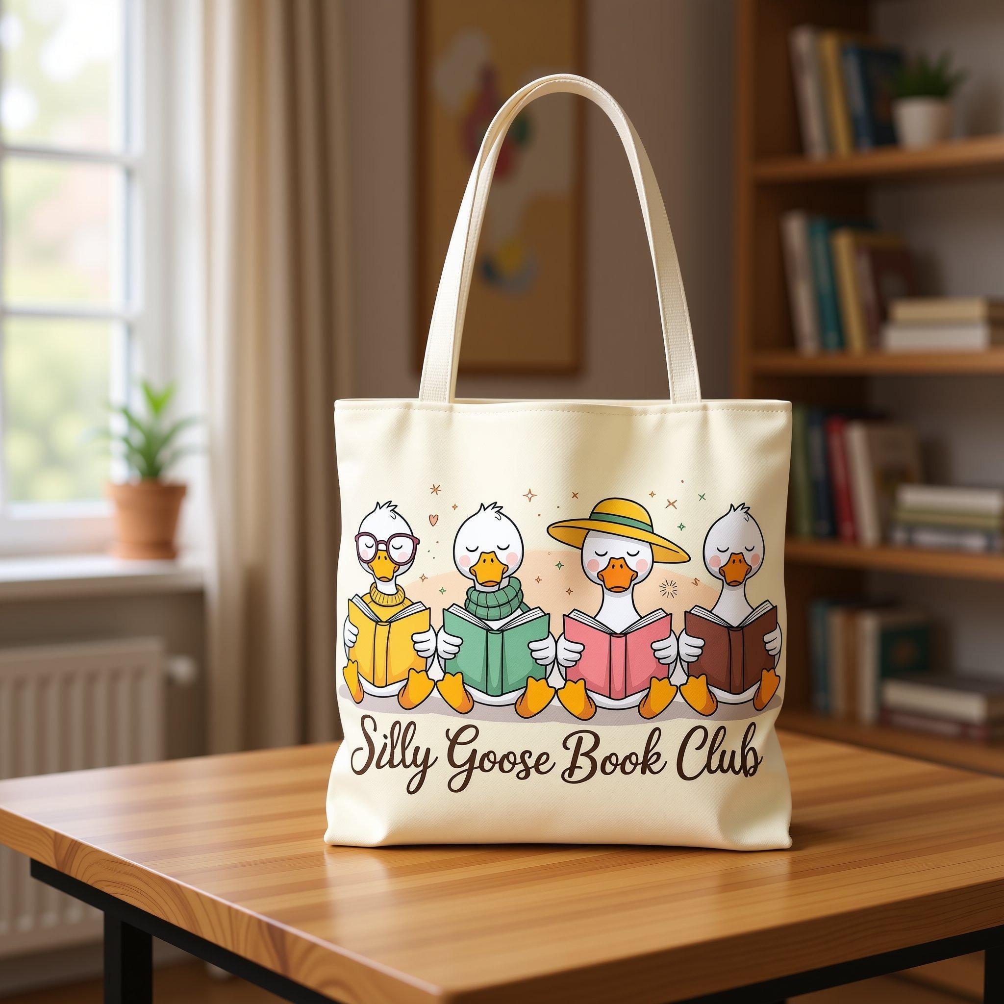 Embrace your love of reading with this delightful tote, perfect for every booklover who cherishes cozy library visits and relaxed meetups. Featuring a charming illustration of four bookish geese, this Silly Goose Book Club tote bag brings a playful, warm cream canvas to life with its cute reading ducks design. Lightweight yet sturdy, it’s crafted to carry your novels and notebooks with ease while adding a touch of whimsy to your daily errands.