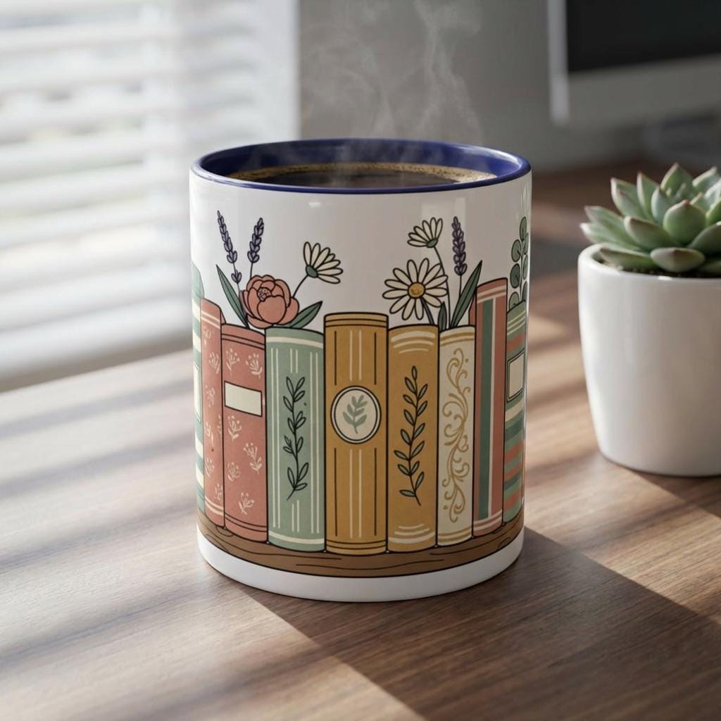 There's something magical about starting your day with a warm cup in hand, especially when it features a floral vintage design that evokes cozy literary moments. This ceramic coffee mug celebrates the charm of old books and delicate wildflowers, making it a perfect gift for anyone who treasures quiet mornings and timeless stories. With its colored interior and handle, this mug adds a subtle pop of color that complements its soft, muted artwork beautifully.