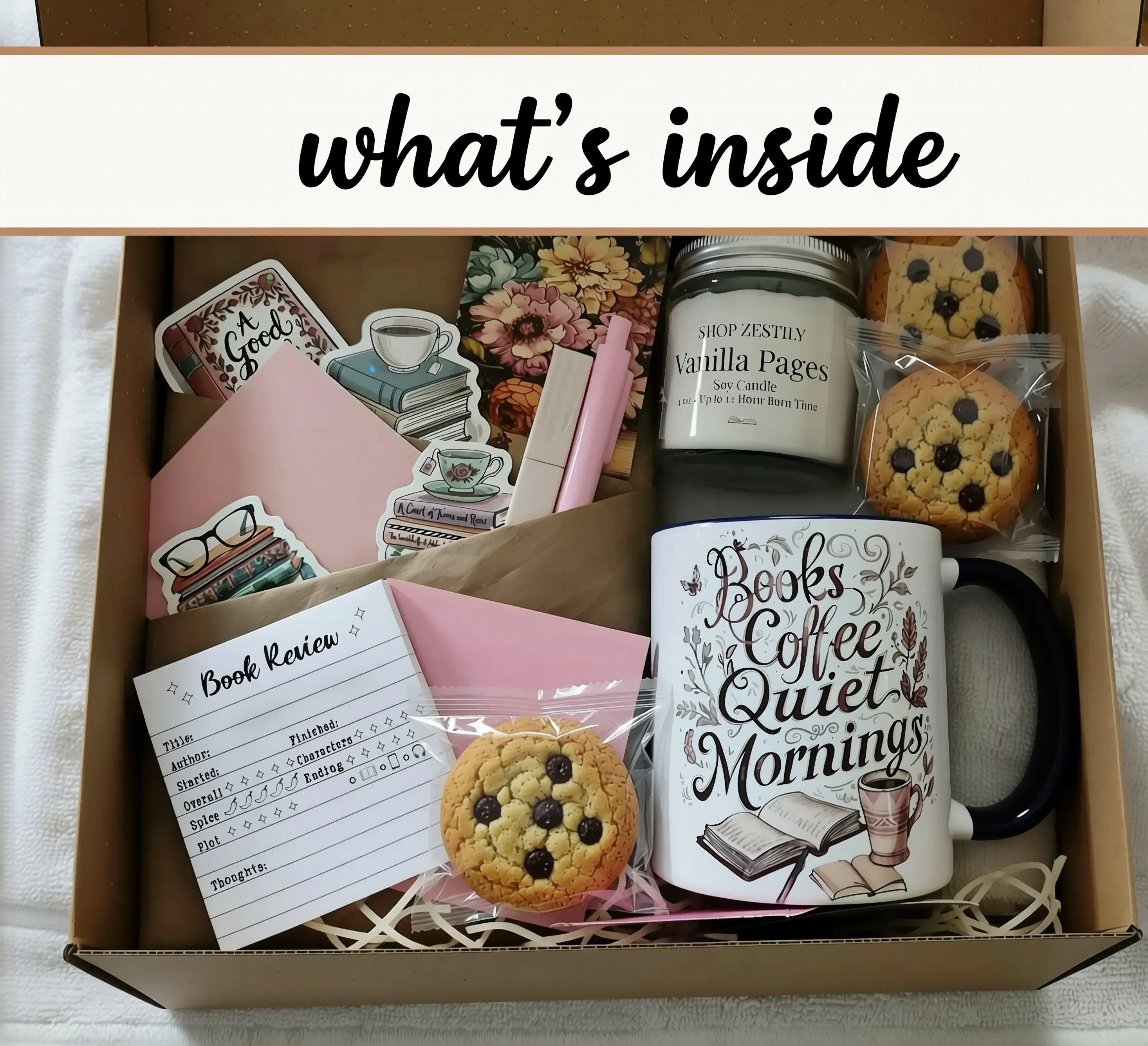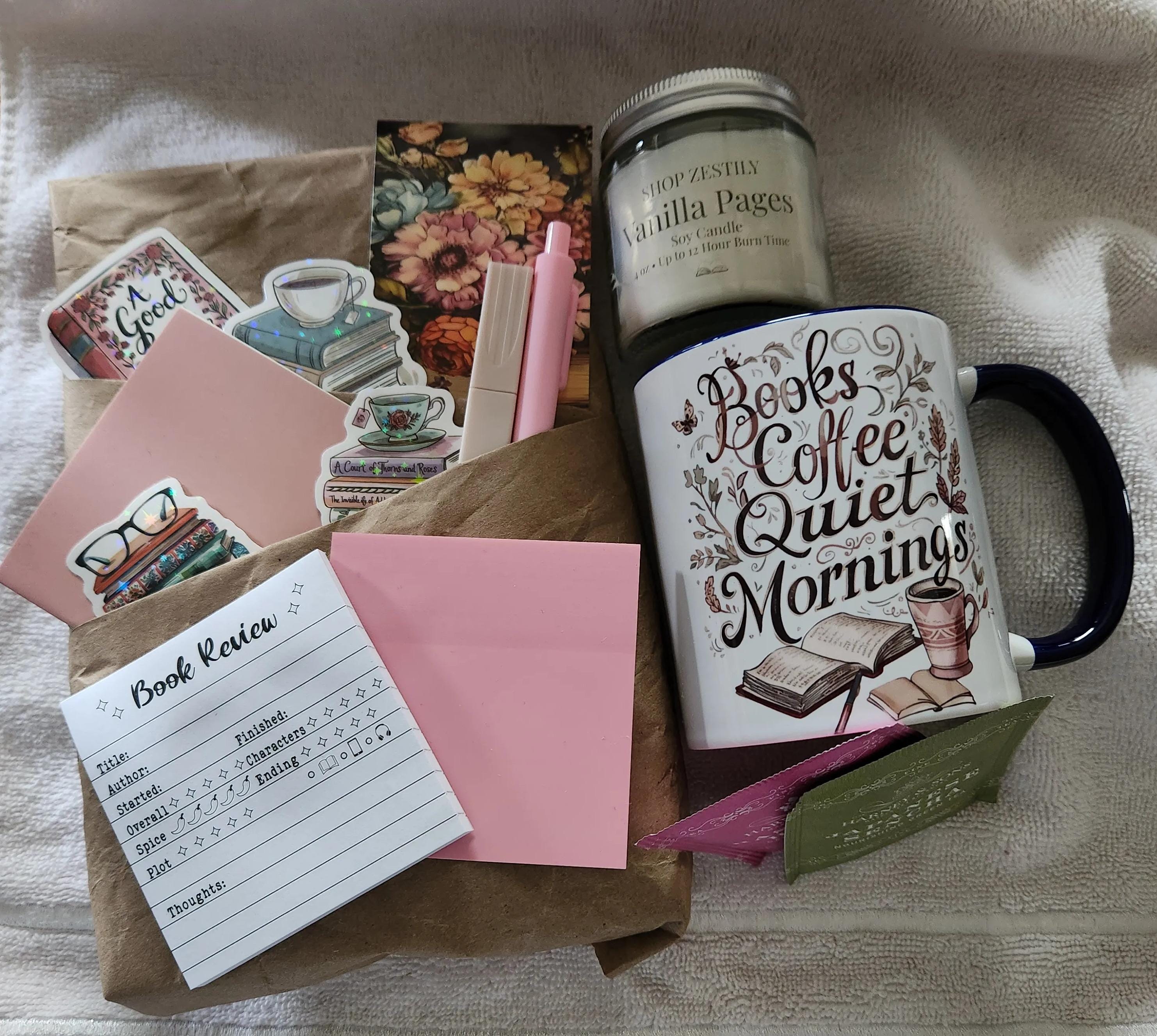 We're a small bookish boutique — not a warehouse, not a subscription box algorithm. Every book is personally selected by a reader, every mug is chosen to match, and every set is hand-packed in our studio in Kentucky. We don't do random. We don't do generic. We do the kind of detail that makes you want to take a photo before you even open it.